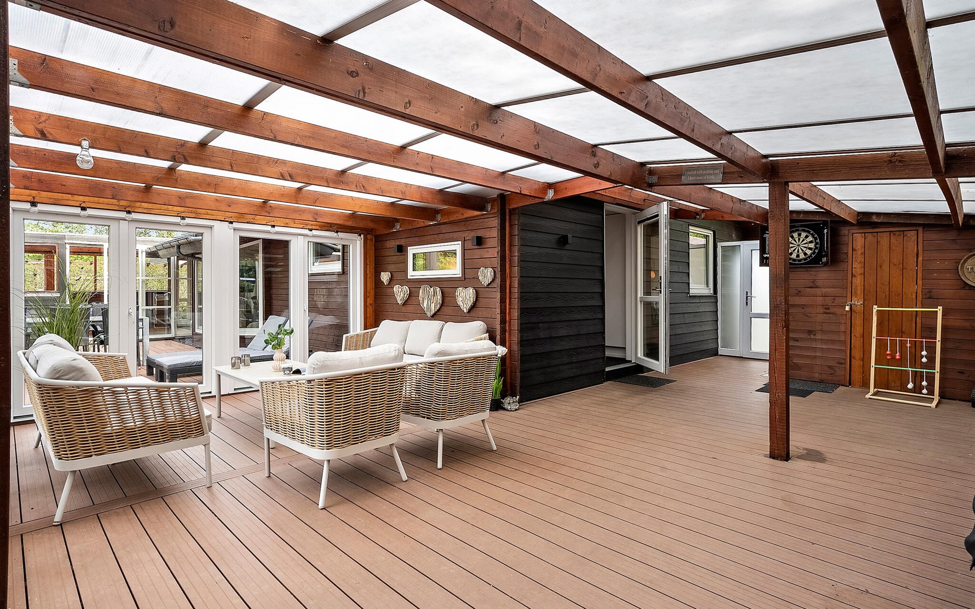 Je kunt ook ontspannen op het terras terwijl de kinderen spelen in de tuin of op de speelplaats. Er is hier genoeg ruimte voor het hele gezin om te ontspannen, spelen en plezier te maken.