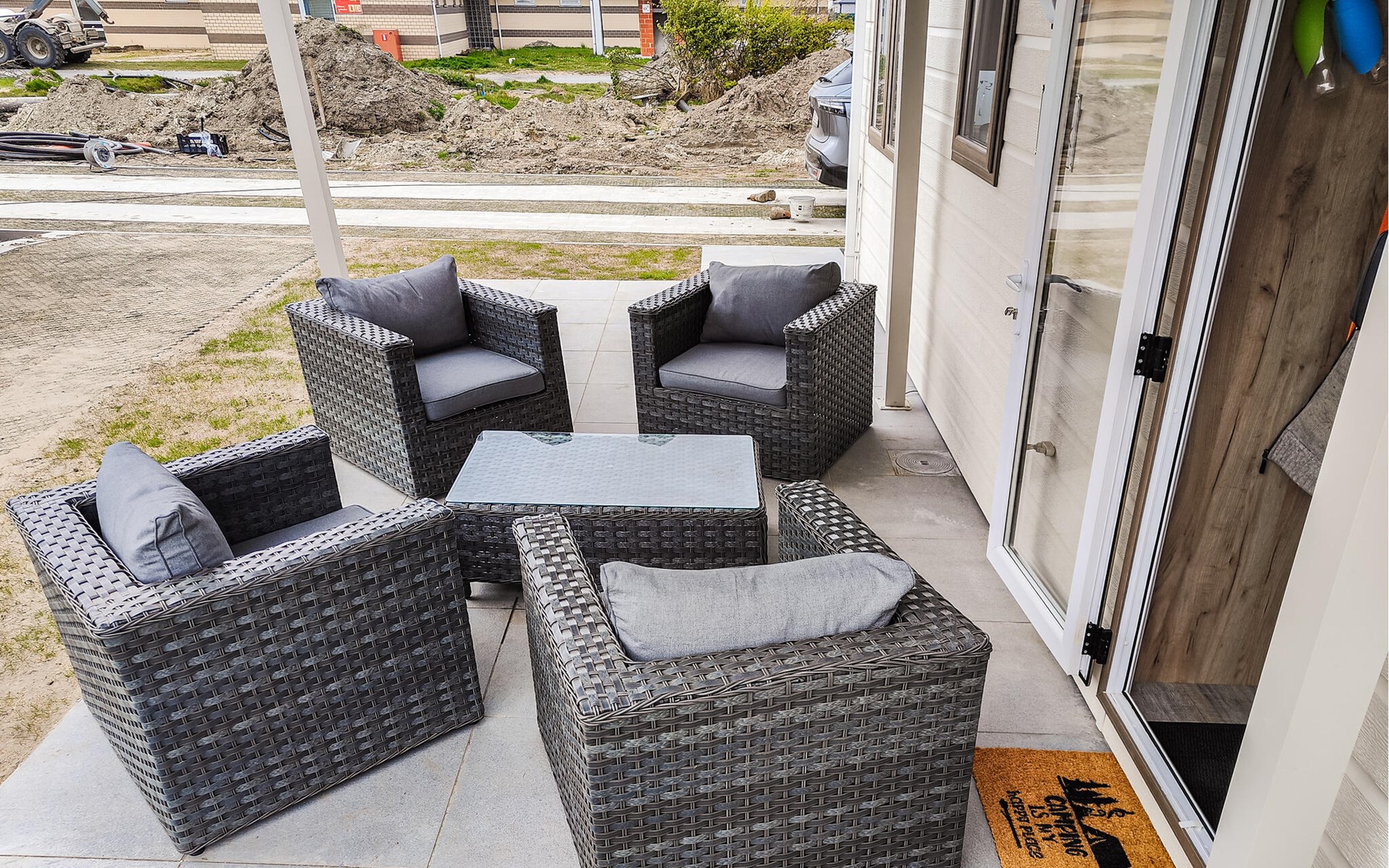 Comfortabele zitplaatsen wachten op je op het open terras, waar je de dag kunt beginnen met een kopje koffie en 's avonds je ervaringen kunt evalueren met een glas wijn.