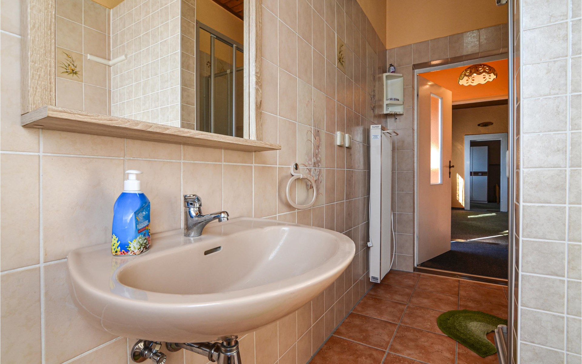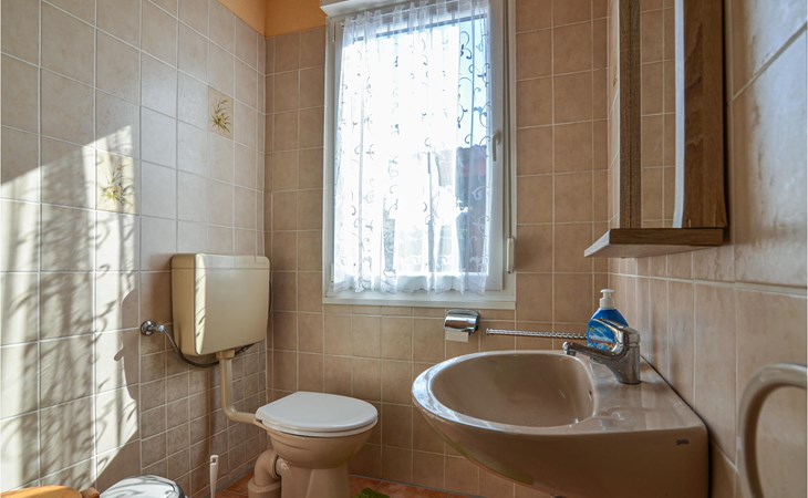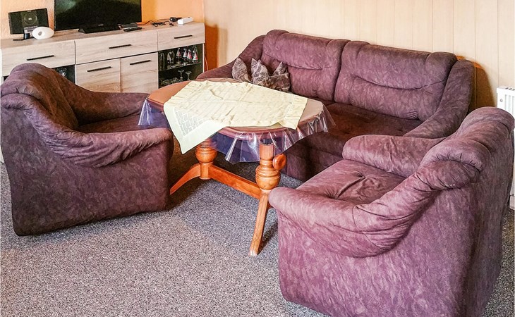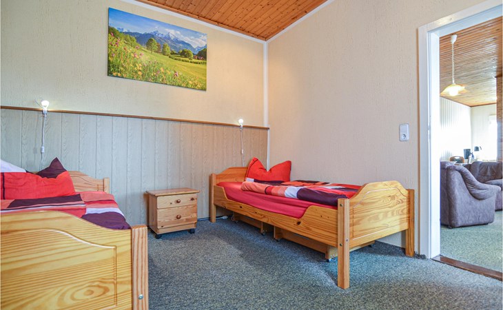 De zitplaatsen in de woonkamer kunnen worden omgebouwd tot een slaapbank voor twee extra gasten. Naast de woonkamer is een slaapkamer met twee eenpersoonsbedden en de lichte badkamer is uitgerust met een douche.