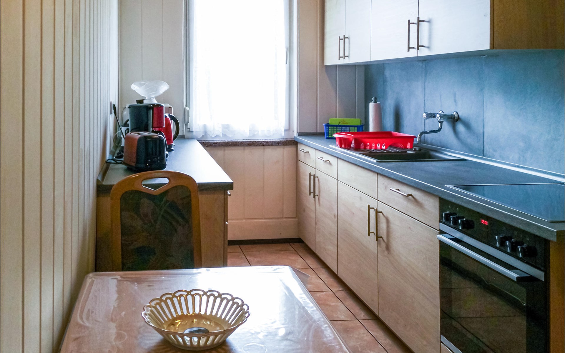 Gezellig ingericht, kunt u uw vakantie hier ontspannen benaderen en uw ziel laten bungelen. De woonkamer, waarin een praktisch ingerichte keuken is geïntegreerd, is huiselijk ingericht en heeft een houtkachel die ook op koelere dagen een behaaglijke warmte uitstraalt.