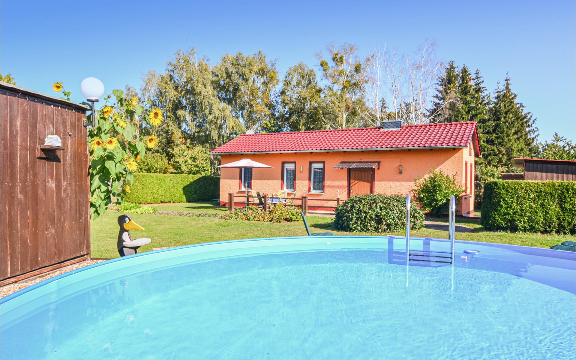 In het dorp zelf vindt u de veldstenen toren van de kerk van Groß Schönebeck, tevens het oudste gebouw van de gemeente. Verschillende vrijetijdsactiviteiten zullen u snel de stress van het dagelijks leven doen vergeten. Het is bijvoorbeeld maar 1,7 km naar het wildpark Schorfheide of het klimbos. Geniet van de unieke natuur te paard, ga fietsen, ontspan tijdens uitgebreide wandelingen of ga zwemmen in een van de meren. Familieplezier wordt beloofd door het uitgebreide dieren-, recreatie- en dinosauruspark Germendorf op 31 km afstand of de westernstad 'El Dorado Templin' op 20 km afstand.