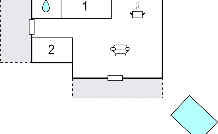 De keuken en de woonkamer staan in open verbinding met het eetgedeelte, van waaruit u uitzicht heeft op de tuin en directe toegang tot het terras, dat zich aan twee kanten van het huis bevindt. Het huis is uitgerust met 2 slaapkamers, een met een tweepersoonsbed en de andere met 2 eenpersoonsbedden. Er is ook een bijgebouw op het terrein met nog een bed en een slaapbank. De tuin is afgeschermd en het grote gazon biedt veel ruimte voor plezier en spelletjes.