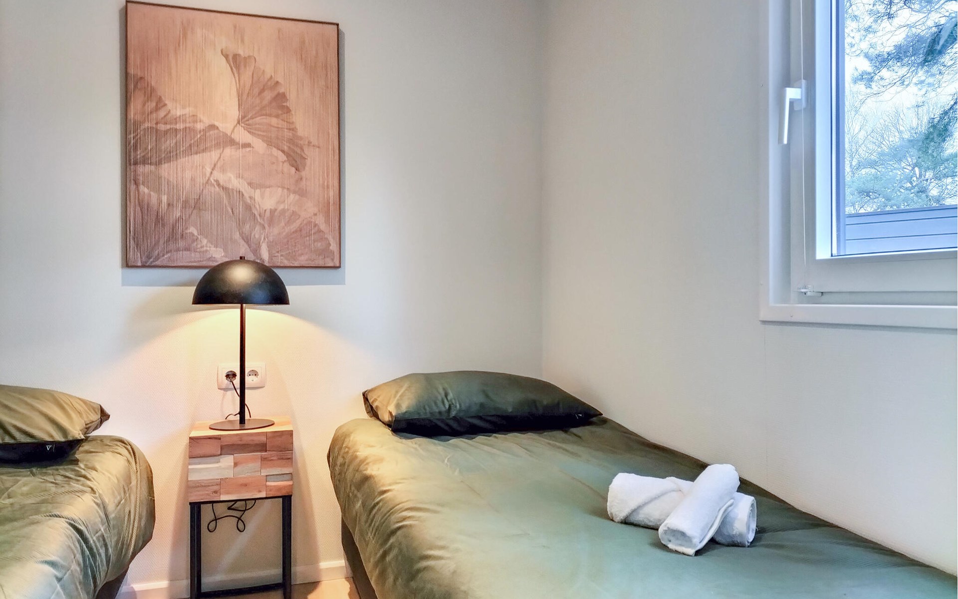 Je vakantiehuis ligt in een klein bos, omgeven door prachtige weilanden, in een vakantiepark. Maak het jezelf 's ochtends gemakkelijk in je vakantiehuis met een vers gezet kopje koffie in de woonkamer, geniet van het prachtige uitzicht buiten en plan de dag die voor je ligt. Na je activiteiten keer je terug naar de smaakvol ingerichte kamers en breng je gezellige avonden door op de uitnodigende bank.