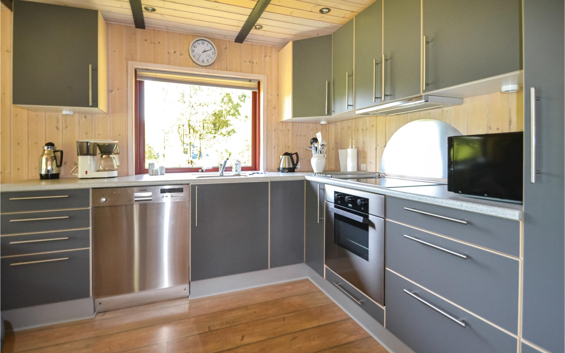 Op het grote, deels omheinde terras voor het huis kunt u barbecueën in de open lucht of in het overdekte gedeelte. Binnen is het huis ruim en ingericht met comfortabele meubels en een houtkachel voor extra warmte.