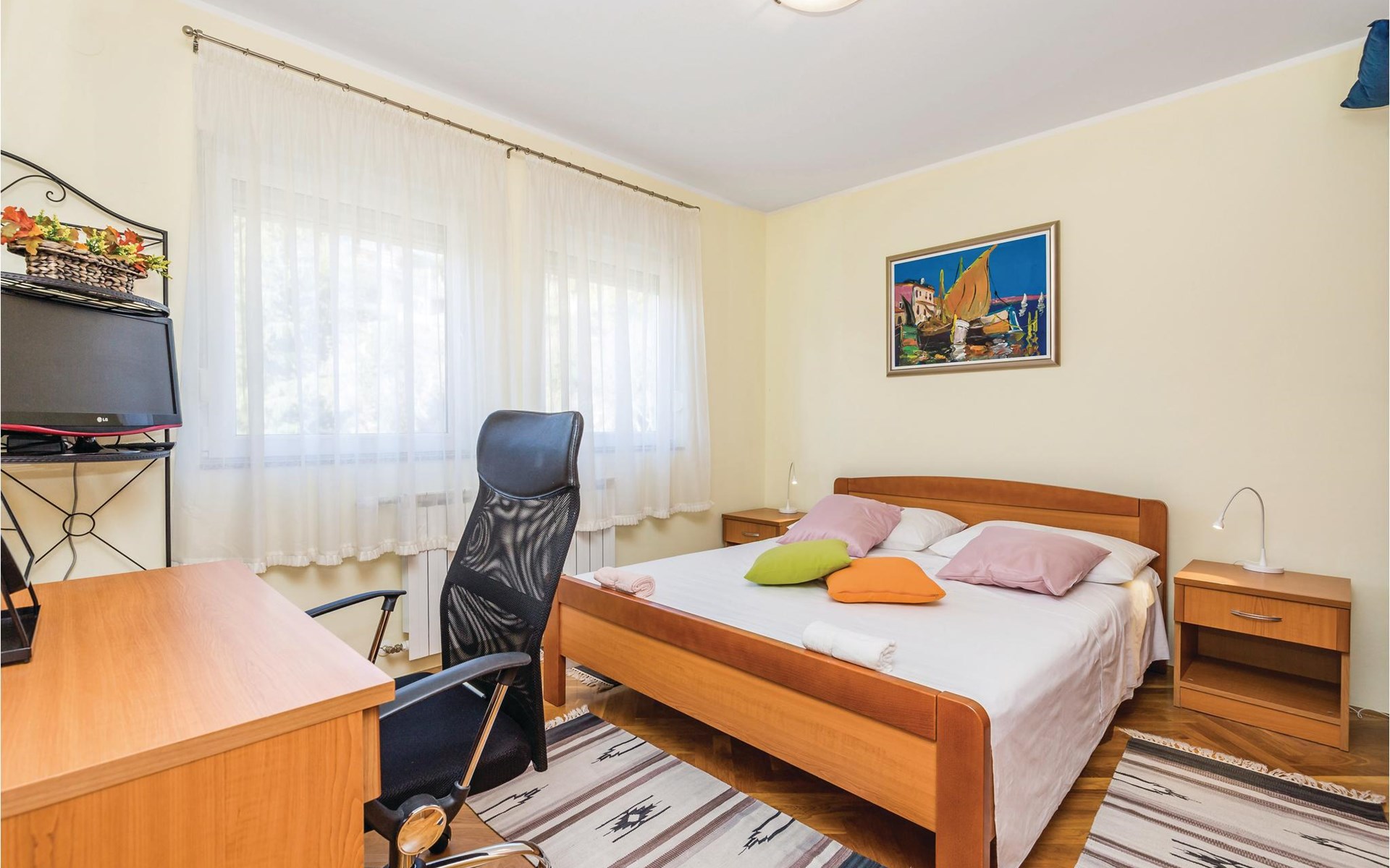 Deze ruime, comfortabele vakantiewoning ligt op slechts 100 meter van een prachtig strand. De vakantiewoning heeft drie slaapkamers, een woonkamer met keuken, badkamer en extra WC. Op het grote balkon kunt u 's morgens genieten van het ontbijt of heerlijk bereide lekkernijen van de barbecue en een leuke tijd samen buiten doorbrengen. Direct onder de flat, aan de overkant van de straat, bevindt zich een overdekt zwembad met een recreatie- en wellnesscentrum. Bezoek het prachtige Opatija en geniet van de mooie promenades en de vele evenementen die in de zomermaanden plaatsvinden.