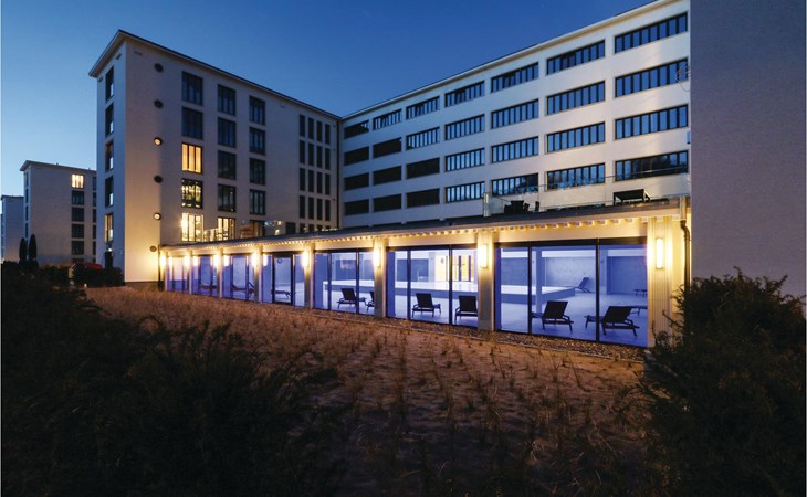 Een van de grootste beschermde gebouwen van Duitsland is omgetoverd tot een waar vakantieparadijs: moderne appartementen met een verfijnd ontwerp direct aan het 7 km lange droomstrand van Prorer Wiek, dat een bijna Caribische flair heeft met kristalhelder water dankzij de nabijgelegen krijtrotsen. Langs de strandpromenade vind je cafés, restaurants en kleine winkeltjes met dagelijkse benodigdheden. Je kunt dus niet alleen ontspannen op je privébalkon met een glas wijn, maar ook 's ochtends genieten van een cappuccino of een sundowner na een mooie dag op het strand in de eigen Prora Solitaire Bar van het hotel.