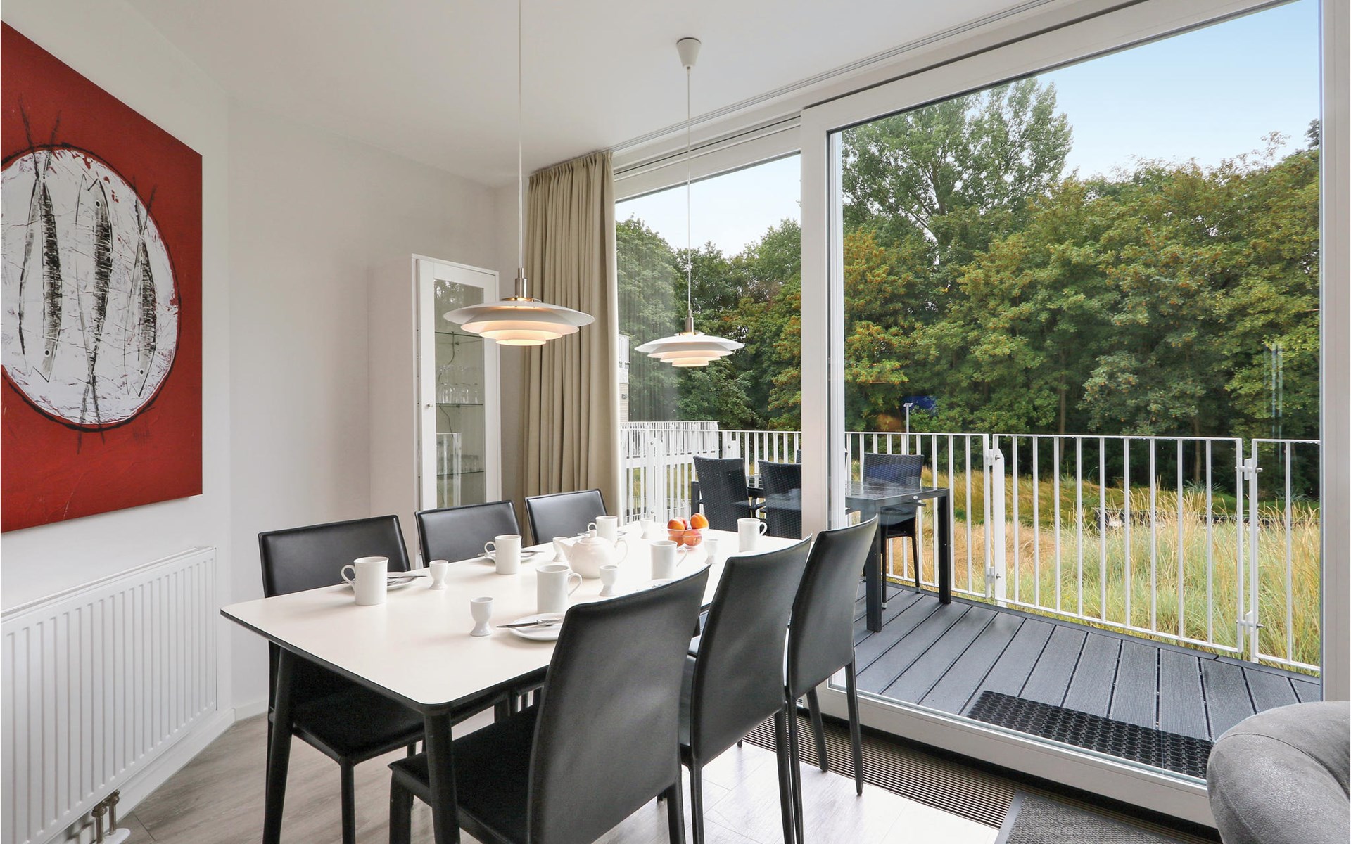 Deze moderne vakantiewoning bevindt zich op de bovenste verdieping van het huis en heeft een ruim balkon met tuinmeubilair. Geniet van de frisse zeelucht en het uitzicht op de aangelegde duinen. Koffieliefhebbers vinden een Nespresso-apparaat in de keuken (breng je eigen capsules mee), evenals een thermoskan en een handfilter om je eigen koffie te zetten als je de voorkeur geeft aan de klassieke filterkoffie.