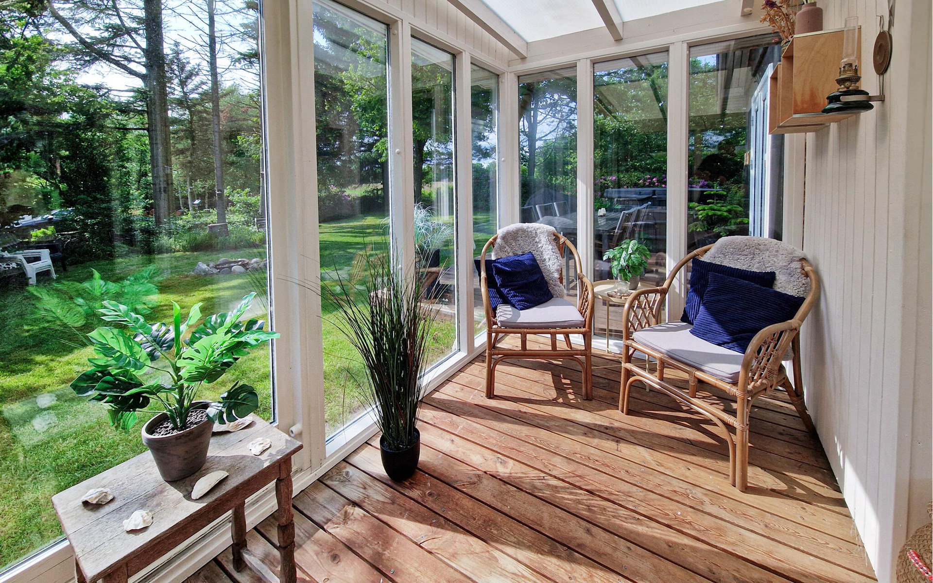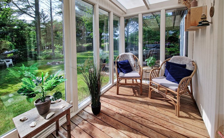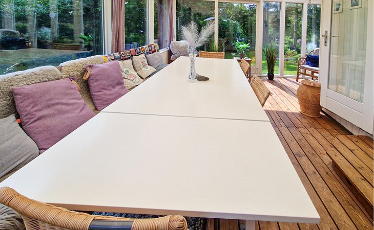 Het huis heeft gezellige terrassen en een mooie serre waar je bij elk weertype comfortabel kunt zitten en genieten van het uitzicht op de groene omgeving.