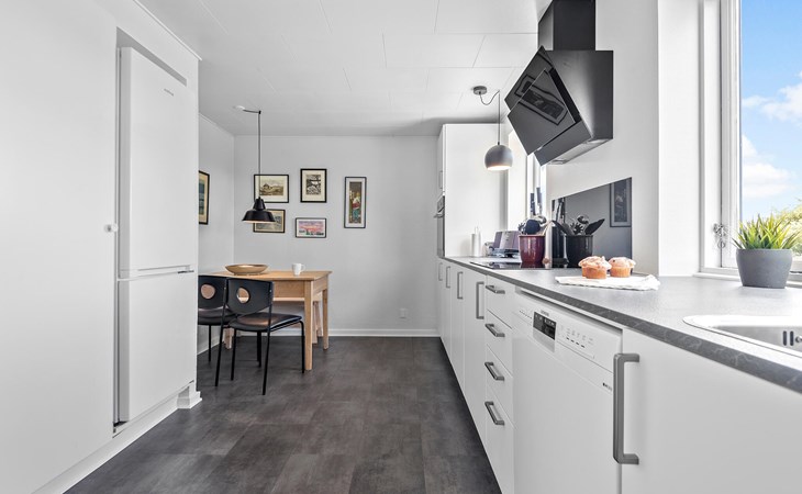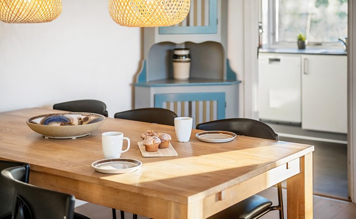Breng je vakantie door in Rindby Strand en geniet van de rust en de nabijheid van de zee vanuit dit vriendelijke en uitnodigende vakantiehuis. Voel je thuis zodra je binnenkomt en ontdek de goede inrichting en huiselijke sfeer die je een geslaagde vakantie beloven. Zwaai met je pollepel in de lichte en goed uitgeruste keuken en geniet van het uitzicht buiten. Je kunt ook gezellig samenzijn in de woonkamer of overdag van de zon genieten op een van de twee terrassen.