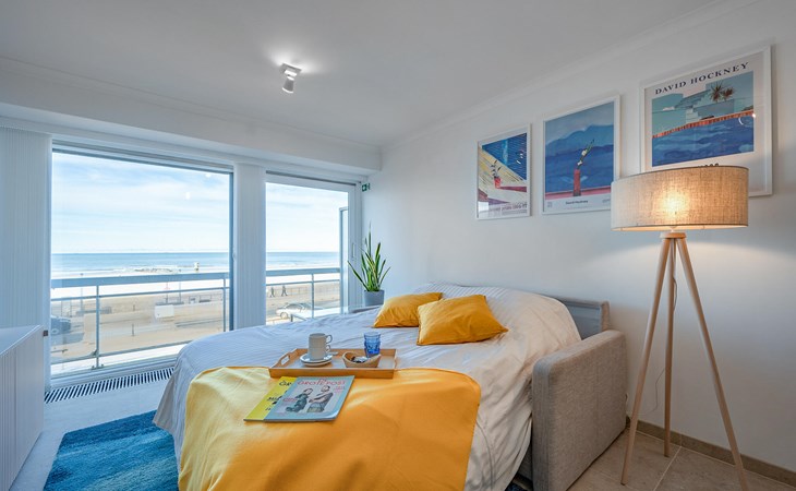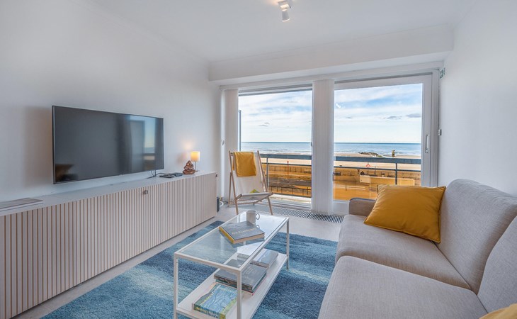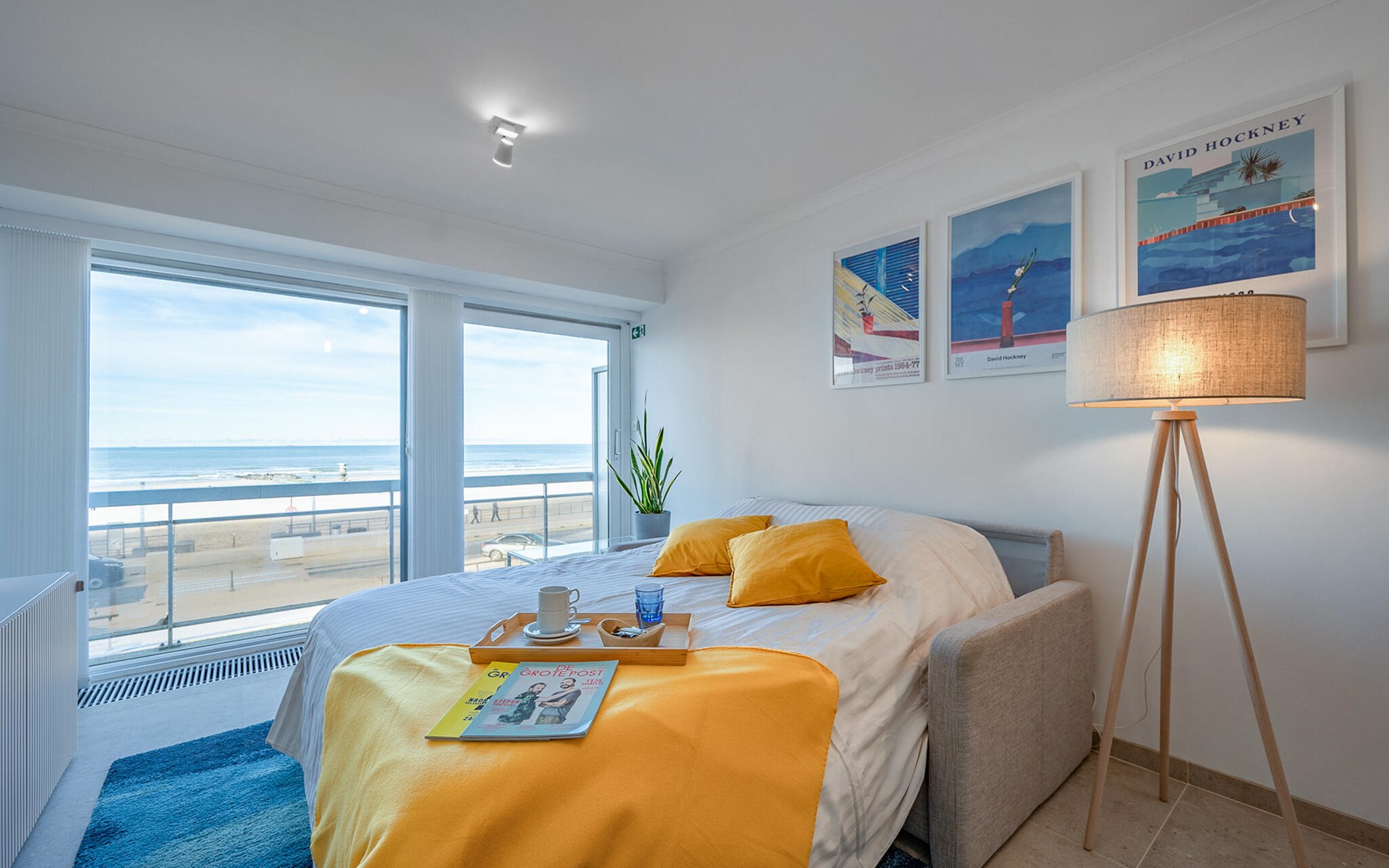 Begin de dag met een adembenemend uitzicht op zee in dit stijlvolle vakantieappartement direct aan het zandstrand van Oostende.
