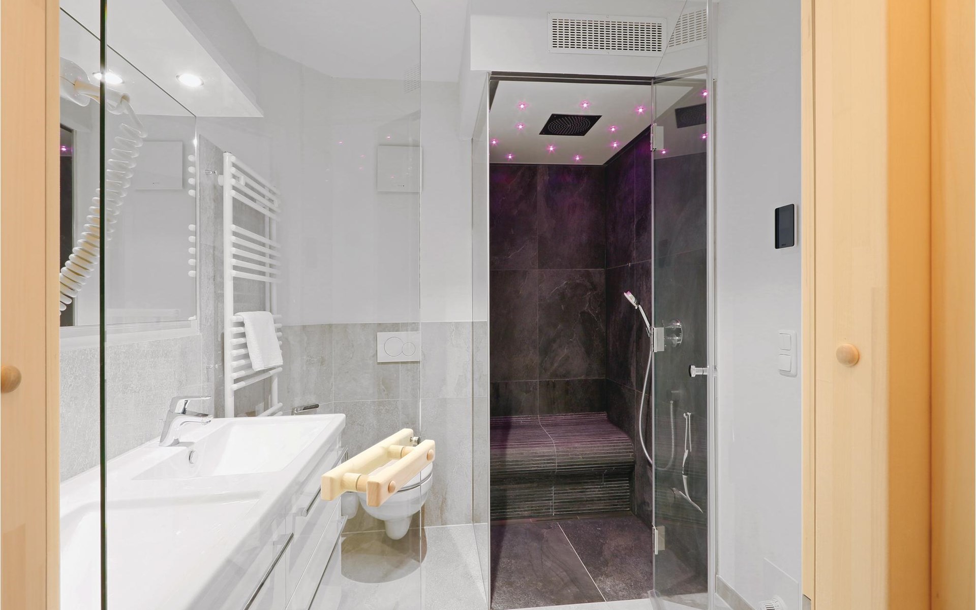 De badkamer is je eigen wellnessruimte. Hier kun je lekker relaxen in de infraroodsauna of ontspannen in het stoombad met regendouche. De vakantiewoning heeft ook een modern entertainmentsysteem met Blu-Ray speler, twee flatscreentelevisies en een muziekinstallatie met MP3-aansluiting.