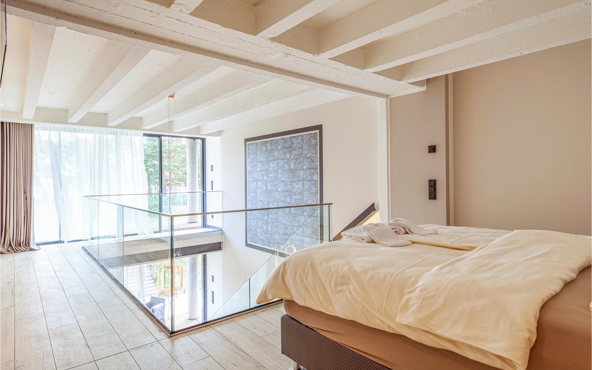 Moderne, exclusieve appartementen aan een van de mooiste stranden van Duitsland: breng je vakantie aan de Oostzee door in deze design-vakantieappartementen in de vakantieresidentie "Prora Solitaire" op Rügen. De hoogwaardige "Avida Loft" maakt indruk met zijn elegante en ongewone ontwerp op twee niveaus. De loft-achtige flat is erg licht en overspoeld met licht dankzij de enorme, elektrische panoramavensters en het ontwerp met veel glas. Alle ruimtes zijn met elkaar verbonden, waardoor een open gevoel van ruimte ontstaat. De open slaap- en kleedruimte bevindt zich op de bovenste verdieping, die bereikbaar is via een trap. Geniet direct vanuit je bed van het uitzicht op de Oostzee. Dankzij het hoogwaardige boxspringbed met zeer comfortabele matrassen begin je de dag heerlijk uitgerust. Er is nog een slaapplaats op de slaapbank in het woongedeelte. De kleine bijkeuken-keuken heeft een vaatwasser en een Tassimo capsule machine voor koffieliefhebbers (neem je eigen capsules mee). Beide balkons liggen op het oosten en zijn voorzien van tuinmeubilair en ligstoelen. Hier kun je ontbijten met uitzicht op het zwembad en het dennenbos en luisteren naar het geluid van de zee terwijl je geniet van de warme zonnestralen. Het appartement ligt direct boven de spa, dus de weg naar ontspanning is heel kort. Laat het leven van alledag achter je en geniet van het samenzijn. De vakantiewoning biedt jullie als koppel alle comfort voor ontspannende dagen. De vakantiewoning belooft een hoogwaardige sfeer van genot en welzijn. Exclusieve meubels zijn perfect op elkaar afgestemd en symboliseren een levensstijl die harmonie en elegantie combineert. Elk meubelstuk en woonaccessoire is zorgvuldig geselecteerd en niets is aan het toeval overgelaten. Er is speciale aandacht besteed aan een gezond binnenklimaat en allergievriendelijke materialen. De moderne appartementen liggen direct aan het 7 km lange droomstrand van Prorer Wiek, dat een bijna Caribische flair heeft met kristalhelder water dankzij de nabijgelegen krijtrotsen. Er zijn cafés, restaurants en kleine winkeltjes met dagelijkse benodigdheden langs de strandpromenade. Je kunt 's ochtends genieten van een cappuccino of een drankje na een mooie dag op het strand in de eigen Prora Solitaire Bar van het hotel. Een parkachtig tuinlandschap met een buitenzwembad, lounges en inheemse flora en fauna strekt zich uit voor de vakantiewoningen in Prora Solitaire. De tuin is exclusief voor de gasten van Prora Solitaire, met een klein dennenbos dat het afschermt van het strand en privacy garandeert. Prora Solitaire - een oase van rust voor lichaam, geest en ziel, het hele jaar door! Vier oplaadstations, elk met een oplaadcapaciteit van 22,5 kW, zijn beschikbaar voor elektrische voertuigen. De oplaadstations bevinden zich in de parkeergarage en zijn alleen toegankelijk voor hotelgasten. Alle gasten van Prora Solitaire hebben toegang tot een wellnessruimte van 1000 m², die je vanuit je appartement kunt bereiken zonder het hotel te hoeven verlaten. Hier vind je niet alleen een groot binnenzwembad met een kinderbad, maar ook verschillende sauna's en ontspanningsruimtes, een fitnessruimte met de juiste apparatuur en de mogelijkheid om massages en andere behandelingen te boeken bij de receptie. Andere specialiteiten zijn het restaurant en de eigen bar van het hotel. Meerdere keren per week kun je deelnemen aan gratis yogalessen of fitnesstraining met ervaren trainers. In de buitenruimte is er ook een basketbalring, een jeu de boulesbaan, een openluchtschaakspel en twee tafeltennistafels, waar je gratis gebruik van kunt maken. Gasten van Prora Solitaire hebben de mogelijkheid om tegen betaling dagelijks gebruik te maken van het uitgebreide ontbijtbuffet. Auto's kunnen tegen betaling geparkeerd worden op de eigen parkeergarage van het hotel. Op de 2e verdieping zijn in een aparte ruimte tegen betaling wasmachines en drogers beschikbaar voor alle gasten.