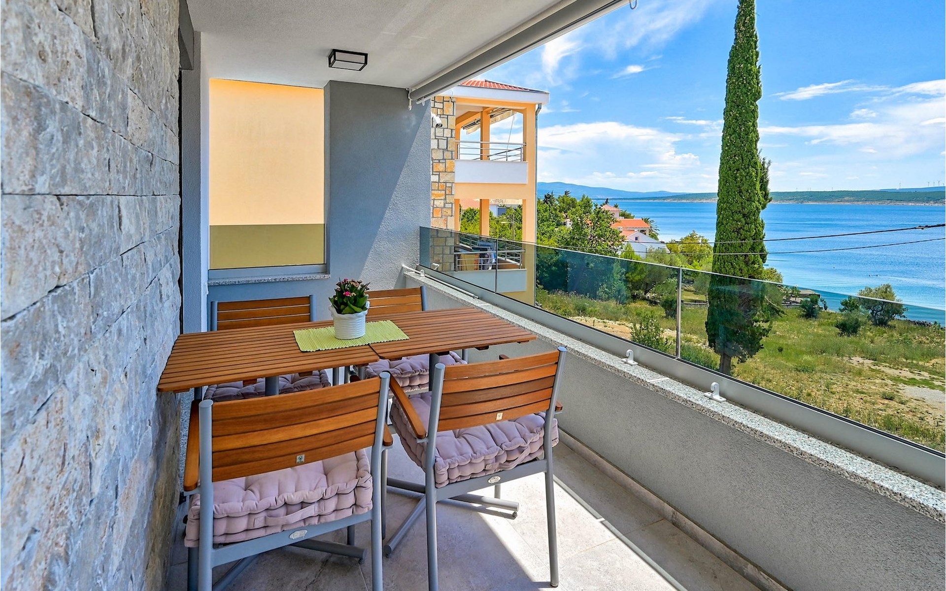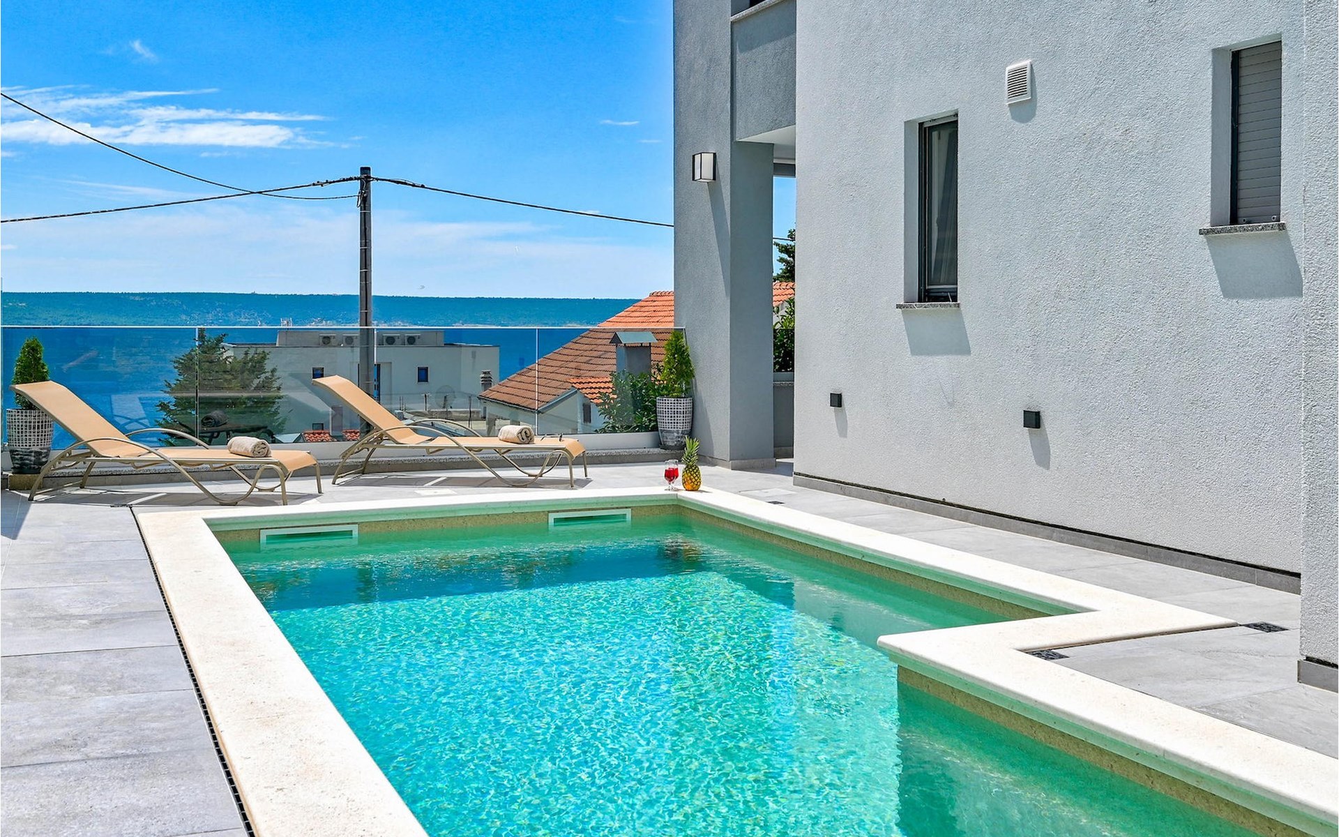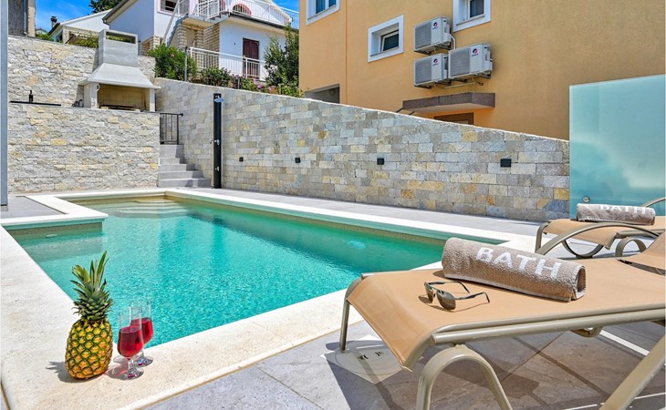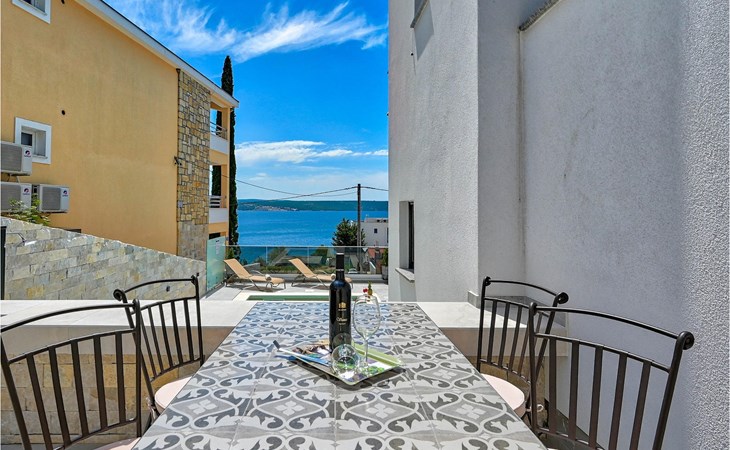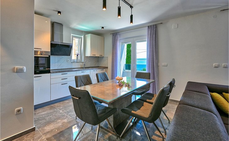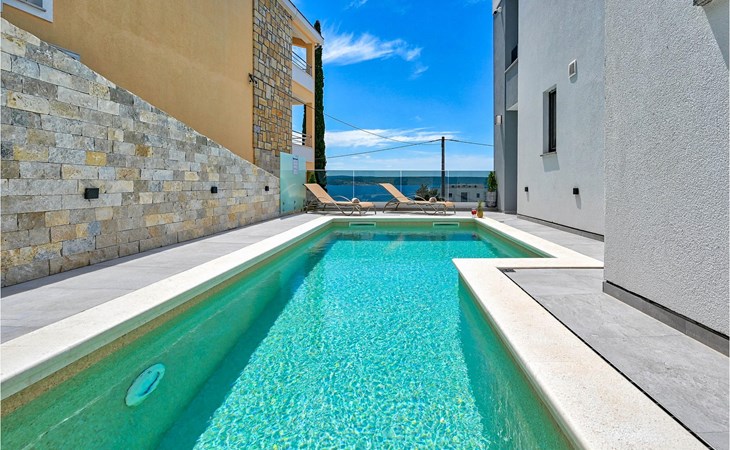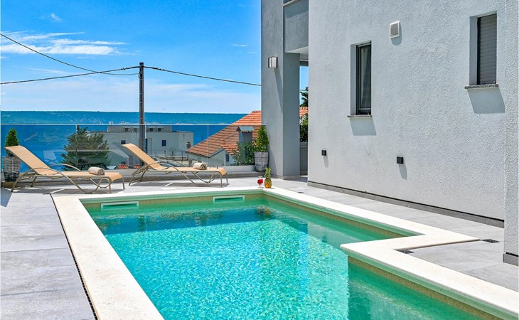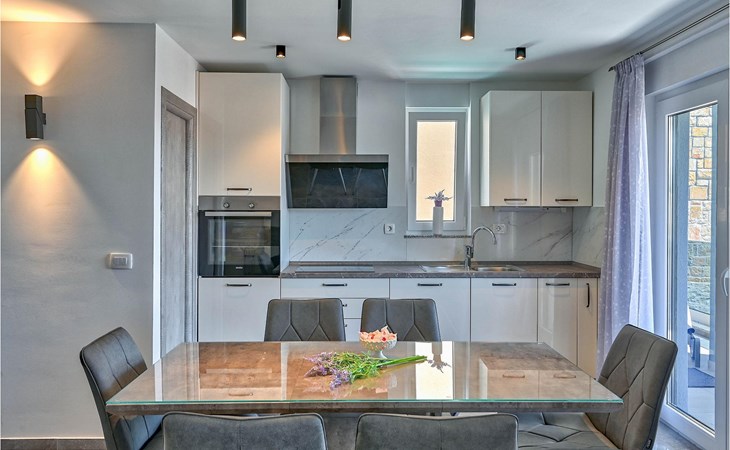De prachtige Villa Futura met zeezicht ligt in Maslenica bij Zadar. Naast een prachtig uitzicht op zee biedt deze villa comfortabele accommodatie voor maximaal 8 gasten. De villa is verdeeld in drie verdiepingen. De begane grond van de villa heeft een woonkamer, een volledig uitgeruste keuken met eetkamer en bijkeuken, een badkamer en een overdekt terras met toegang tot een privézwembad. Op de eerste verdieping bevinden zich drie slaapkamers, waarvan één met en-suite badkamer, een aparte badkamer en een overdekt terras. Op de tweede verdieping van de villa is een groot dakterras waar je kunt genieten van de zon en het uitzicht op zee. Als je jezelf wilt verfrissen, biedt de villa een privézwembad waar je kunt genieten van het uitzicht op zee. Boek Villa Futura en ontspan in het prachtige Dalmatië Villa Futura ligt in Maslenica, vlakbij de stad Zadar. Het ligt op slechts 100 meter van het strand. De locatie is niet alleen daarom aantrekkelijk - je kunt vanuit Maslenica talloze dagtochten maken. Het nationale park Paklenica ligt op slechts 15 minuten rijden. De stad Zadar, waar je bezienswaardigheden zoals het zeeorgel en de kerk van St. Donat kunt bezoeken, ligt op slechts 35 minuten rijden. Proef Dalmatische specialiteiten in de vele cafés en restaurants op slechts 300 meter van de villa. Supermarkten zijn te vinden binnen een straal van 1 km. De geweldige locatie van Villa Futura biedt haar gasten vele mogelijkheden en je kunt bijna alles wat je nodig hebt te voet bereiken.