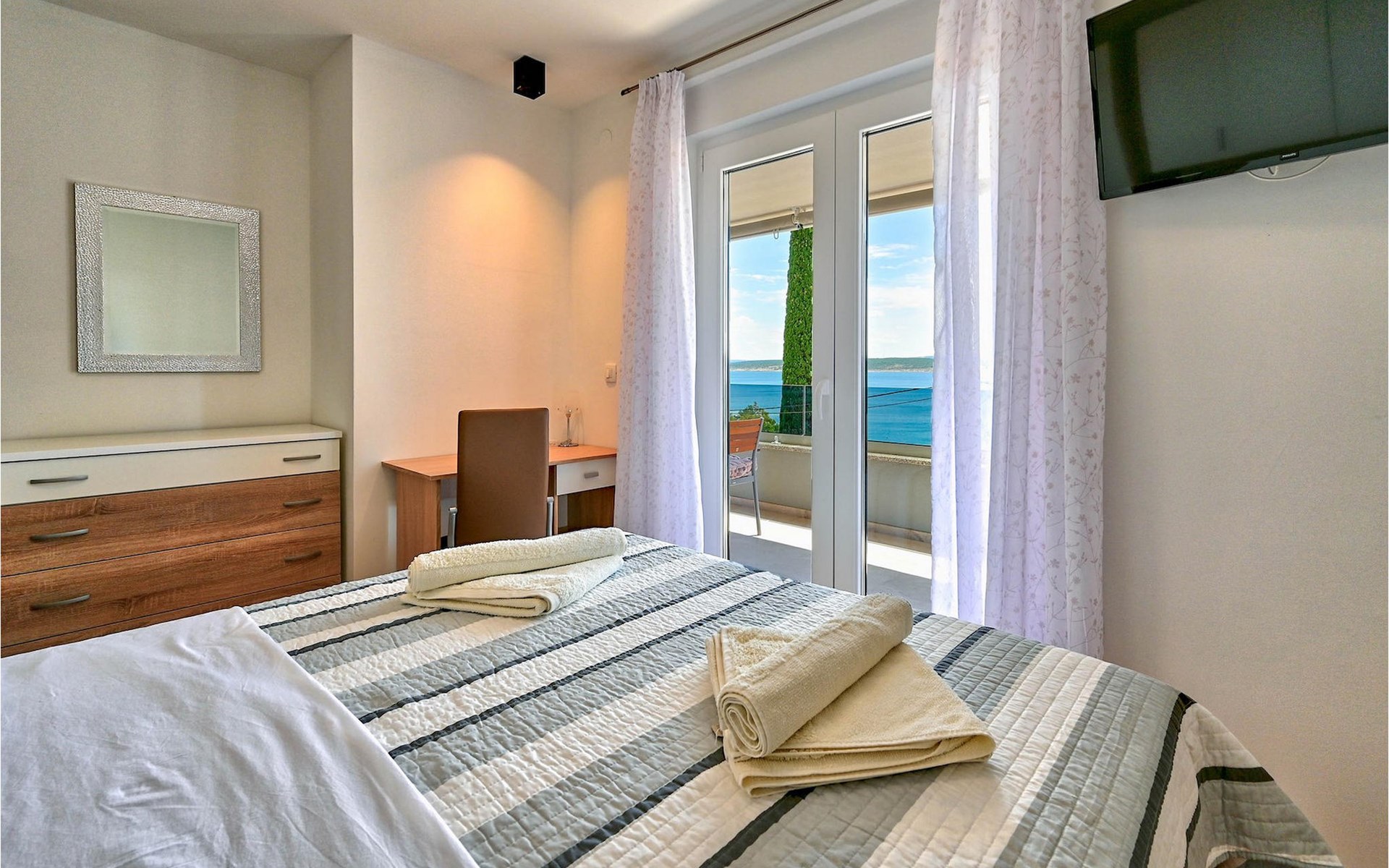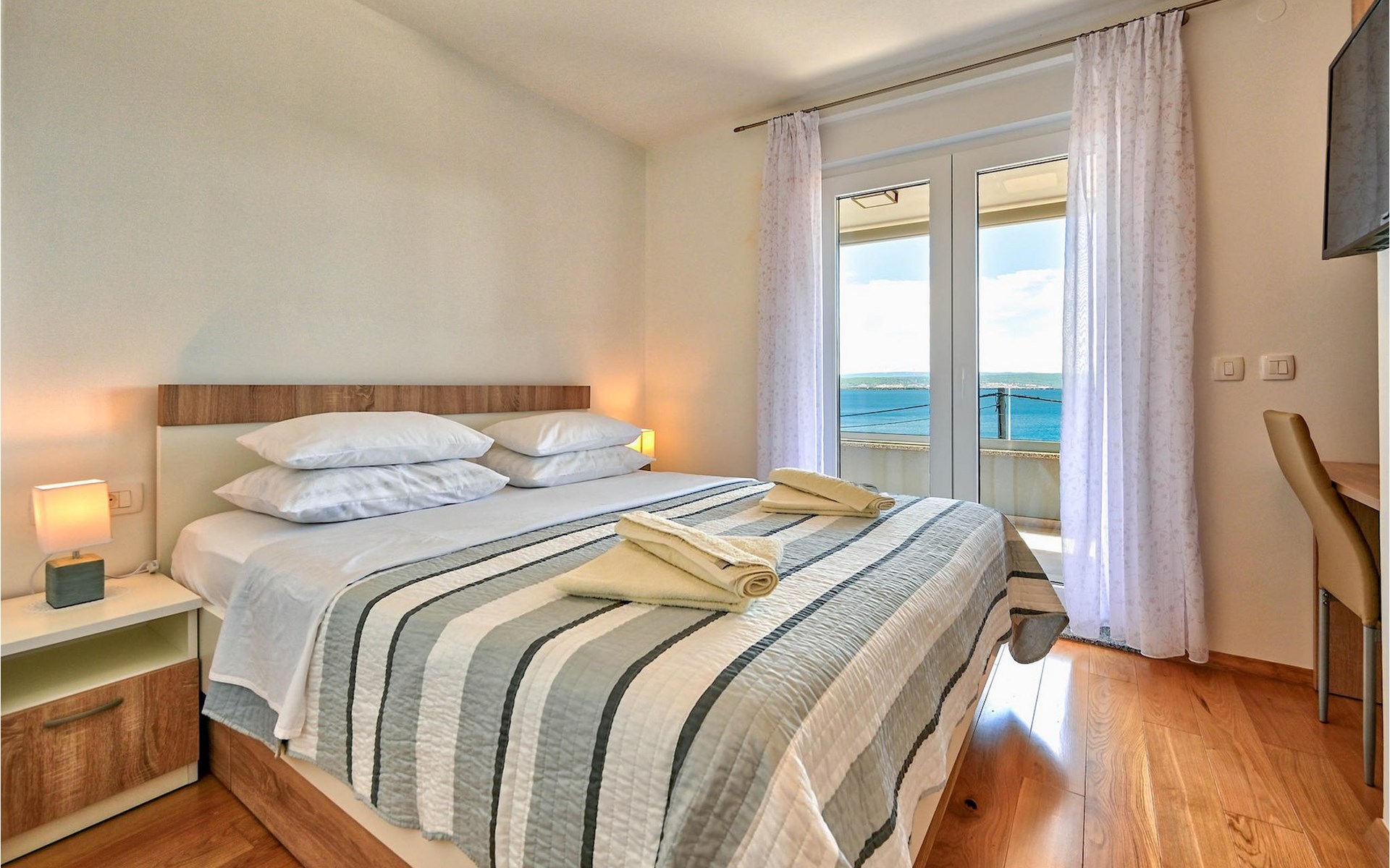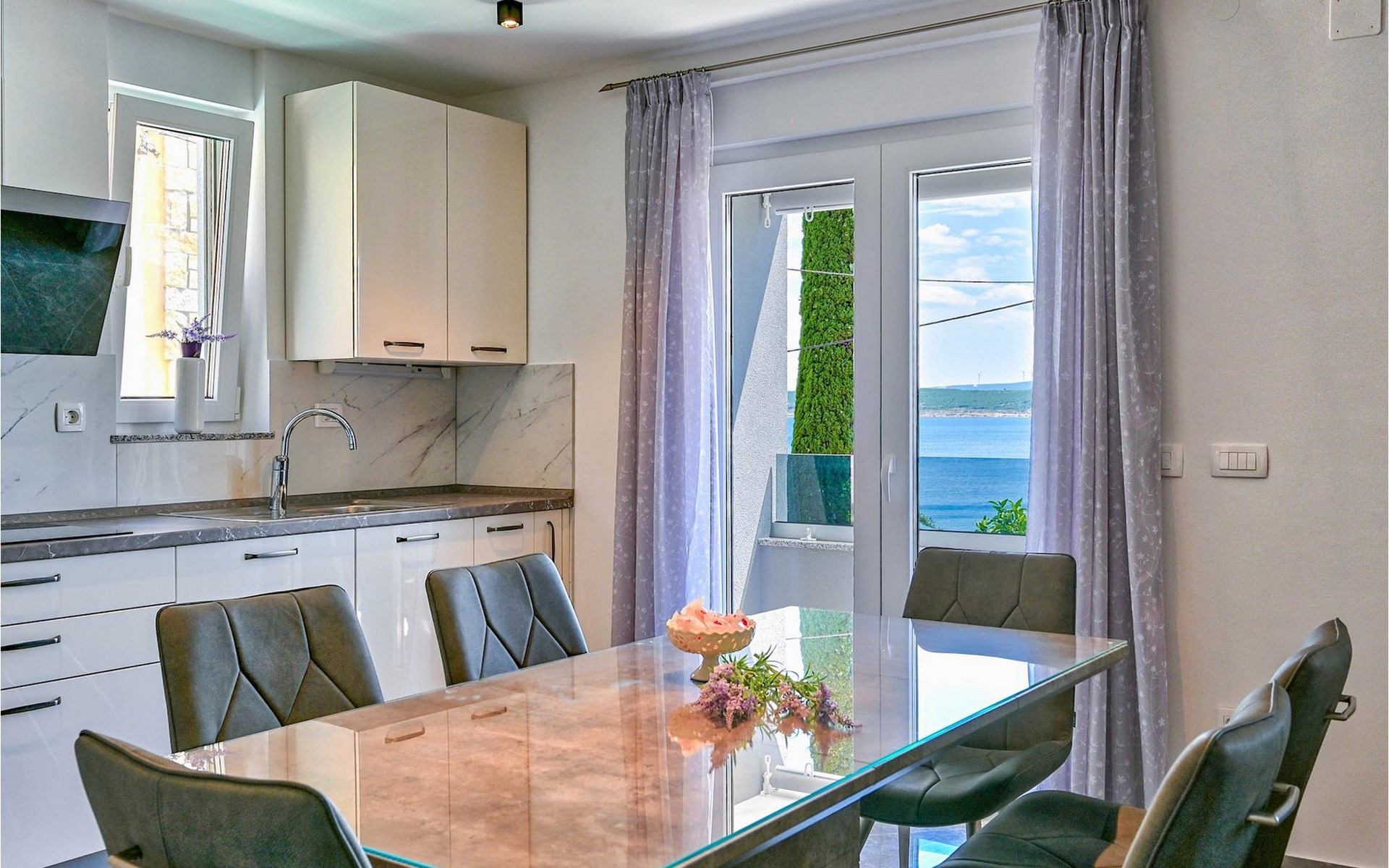 De prachtige Villa Futura met zeezicht ligt in Maslenica bij Zadar. Naast een prachtig uitzicht op zee biedt deze villa comfortabele accommodatie voor maximaal 8 gasten. De villa is verdeeld in drie verdiepingen. De begane grond van de villa heeft een woonkamer, een volledig uitgeruste keuken met eetkamer en bijkeuken, een badkamer en een overdekt terras met toegang tot een privézwembad. Op de eerste verdieping bevinden zich drie slaapkamers, waarvan één met en-suite badkamer, een aparte badkamer en een overdekt terras. Op de tweede verdieping van de villa is een groot dakterras waar je kunt genieten van de zon en het uitzicht op zee. Als je jezelf wilt verfrissen, biedt de villa een privézwembad waar je kunt genieten van het uitzicht op zee. Boek Villa Futura en ontspan in het prachtige Dalmatië Villa Futura ligt in Maslenica, vlakbij de stad Zadar. Het ligt op slechts 100 meter van het strand. De locatie is niet alleen daarom aantrekkelijk - je kunt vanuit Maslenica talloze dagtochten maken. Het nationale park Paklenica ligt op slechts 15 minuten rijden. De stad Zadar, waar je bezienswaardigheden zoals het zeeorgel en de kerk van St. Donat kunt bezoeken, ligt op slechts 35 minuten rijden. Proef Dalmatische specialiteiten in de vele cafés en restaurants op slechts 300 meter van de villa. Supermarkten zijn te vinden binnen een straal van 1 km. De geweldige locatie van Villa Futura biedt haar gasten vele mogelijkheden en je kunt bijna alles wat je nodig hebt te voet bereiken.