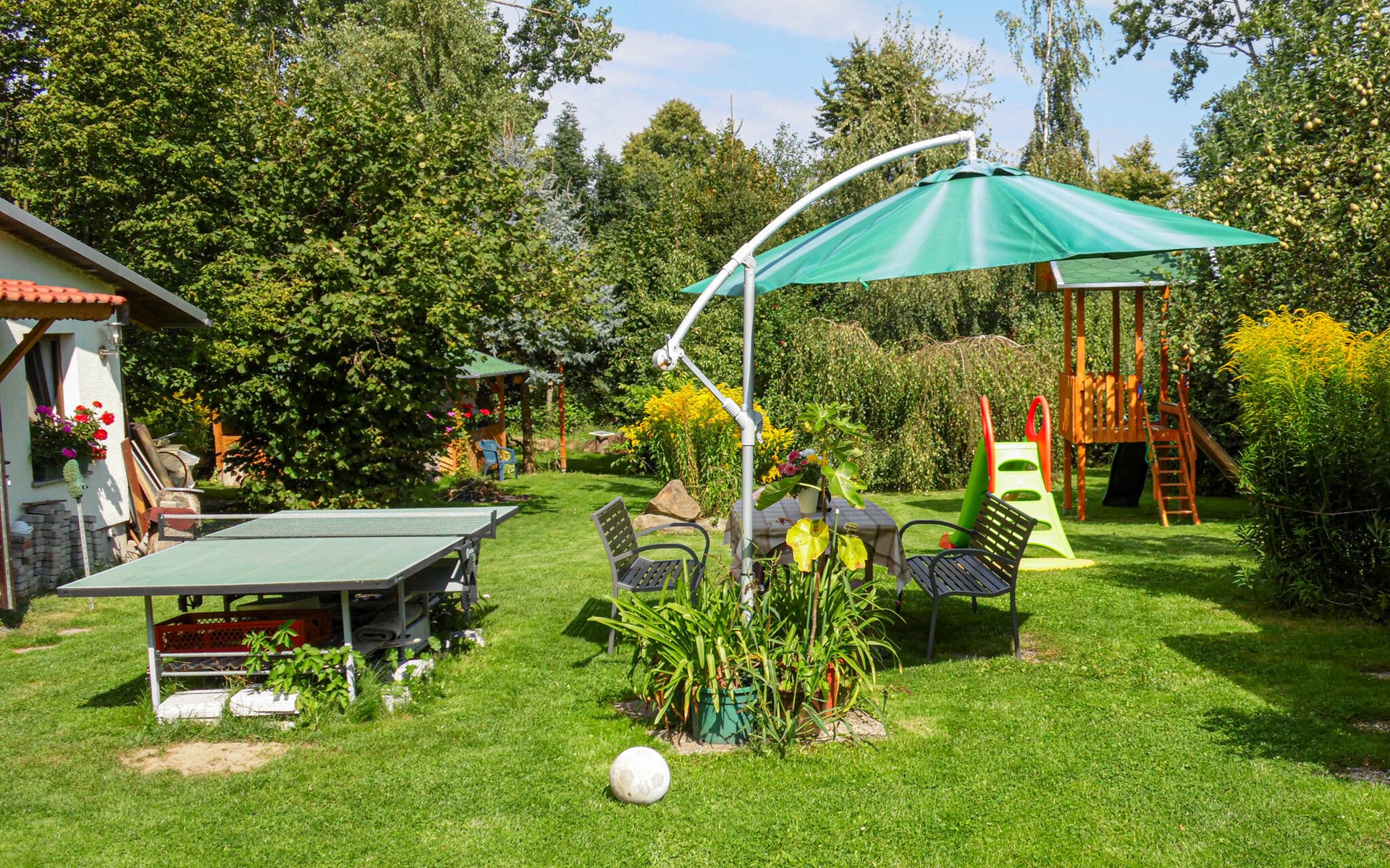 Bij Zum Hecht kunt u ook genieten van een bloemen- en groentetuin, een grote buitenspeelruimte met een tafeltennistafel en een terrein van 500 m² met fruitbomen. Maak ook gebruik van de buitenzithoek met tuinmeubilair, de barbecueplaats en de speeltoestellen. U kunt genieten van de avondzon op het terras aan de westkant van het huis. Er zijn ook huurfietsen beschikbaar.