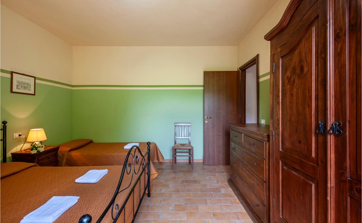 Deze vakantiewoning ligt op het landgoed Valguerriera op ongeveer 4 km van Piobbico in een vallei in de Apennijnen, een ideale bestemming voor wie een ontspannen vakantie wil doorbrengen in de ongerepte natuur. Het landgoed bestaat uit het landhuis en drie landhuizen, de ruime gemeenschappelijke buitenruimtes en het prachtige gemeenschappelijke zwembad (17x10m) met hydromassage. In de landhuizen zijn in totaal 11 sfeervol ingerichte vakantiewoningen gecreëerd. Het appartement heeft een eigen ingang in een kleine buitenruimte met tafel, stoelen en parasol, waar je kunt ontspannen en buiten kunt eten. Barbecue en wasmachine voor gemeenschappelijk gebruik. Parkeerplaats op het terrein. 1 babybedje beschikbaar. De woning is gelegen in de Marche, op de grens met de regio's Toscane en Umbrië, in de buurt van Piobbico (provincie Pesaro en Urbino), in een rustige vallei genaamd Candigliano, een van de mooiste en meest ongerepte valleien in het achterland van Pesaro, dat een mild klimaat heeft en vanwaar je kunt genieten van een prachtig uitzicht op de Apennijnen. In de omgeving vind je kunststeden en renaissancestadjes zoals Urbino, dat op de Werelderfgoedlijst van UNESCO staat, betoverende middeleeuwse dorpjes zoals Piobbico, Apecchio, SantAngelo in Vado en Acqualagna, beroemd om hun truffels, of Urbania, Cagli, San Marino, Gradara en San Leo. De ligging van de woning is ook gunstig voor dagtrips naar Gubbio, Assisi, Perugia, Città di Castello, Arezzo, San Sepolcro, Loreto, Florence en Siena, allemaal plaatsen van groot kunsthistorisch belang, of naar San Marino, het kasteel van Gradara, de grotten van Frasassi of de Furlo Pass. AFSTANDEN: 4 km Piobbico (kruidenier en andere winkels, bank, apotheek, dokter), 30 km Urbino, 55 km Fano en de stranden van de Adriatische kust, die in ongeveer een uur rijden te bereiken zijn. Op 6 km van een wellnesscentrum en op 10 km van een manege. Mogelijkheid tot begeleide excursies. De 11 vakantiewoningen en het onafhankelijke vakantiehuis, dat bestaat uit 3 van de 11 vakantiewoningen, hebben de volgende referentienummers: IMM127/422/423/424; IMM128/129/130/131; IMM421/412/419/420. Als welkomstgeschenk ontvangen de gasten een fles wijn en een wijnproeverij (één keer per week) in een wijnkelder met wijnen en typische producten. Voor gasten van Novasol zijn er ook speciale tarieven bij een manege op 10 km afstand en een wellnesscentrum op 6 km afstand. WLAN in de gemeenschappelijke buitenruimtes.
