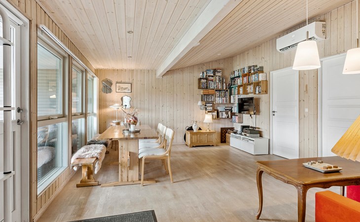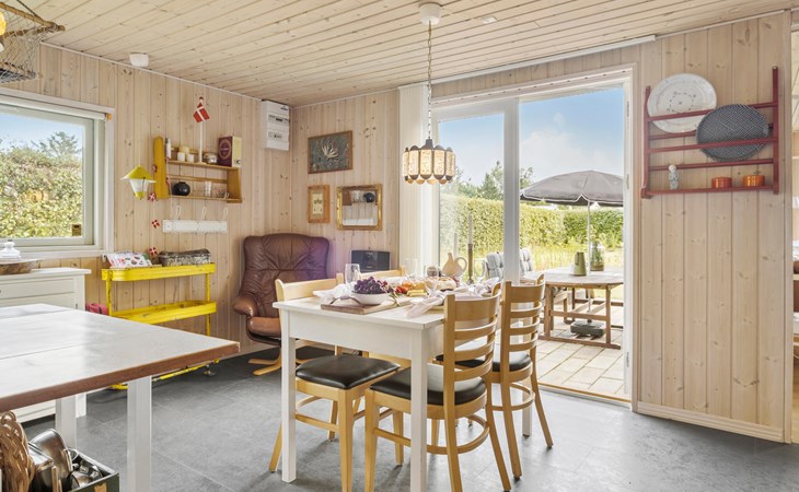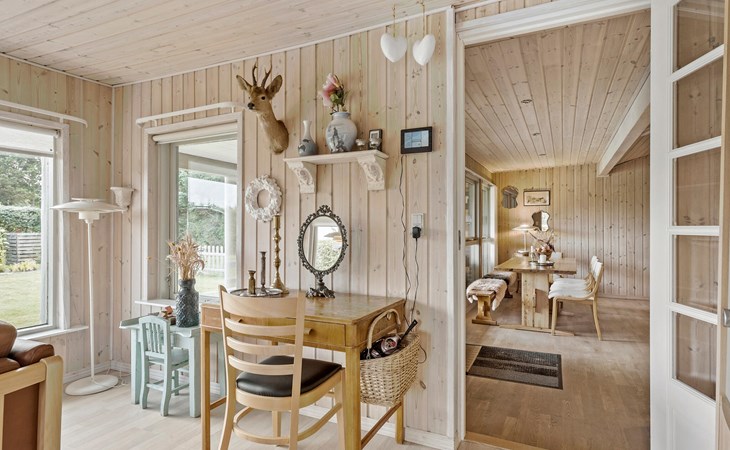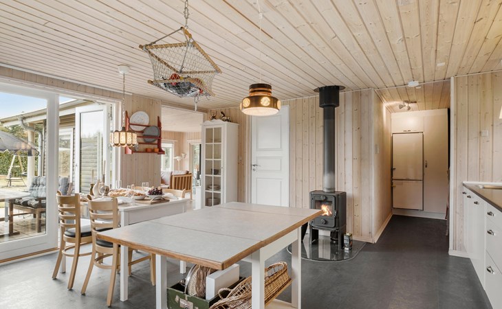 In dit charmante vakantiehuis in Hou wacht je een ontspannen vakantie in een sfeer vol Scandinavische gezelligheid. Het lichtgekleurde houten interieur, gecombineerd met mooie decoratie en de knisperende houtkachel, creëert een warme, uitnodigende sfeer. Geniet van de familietijd door samen te koken of spelletjes te spelen en dompel jezelf onder in de gezellige flair van het huis.