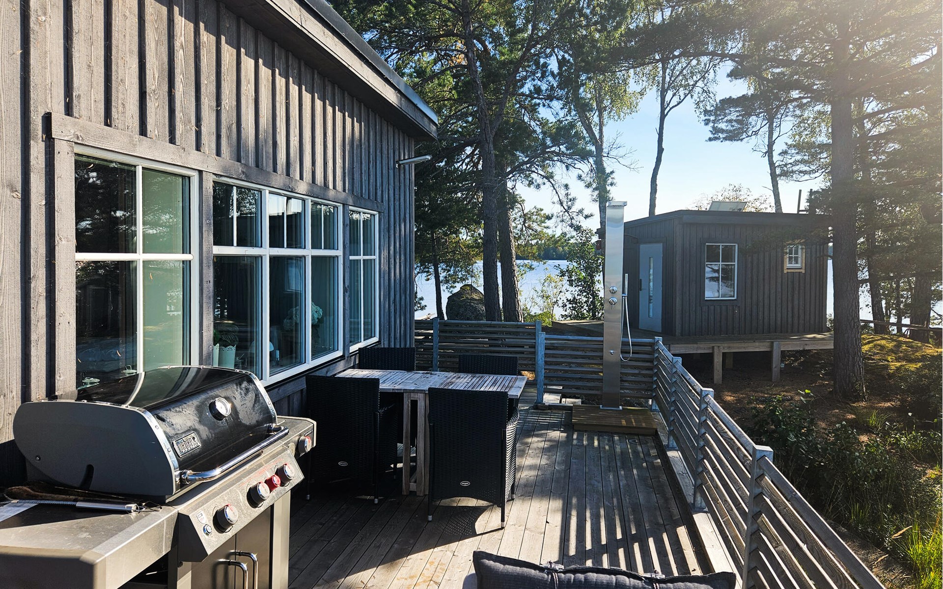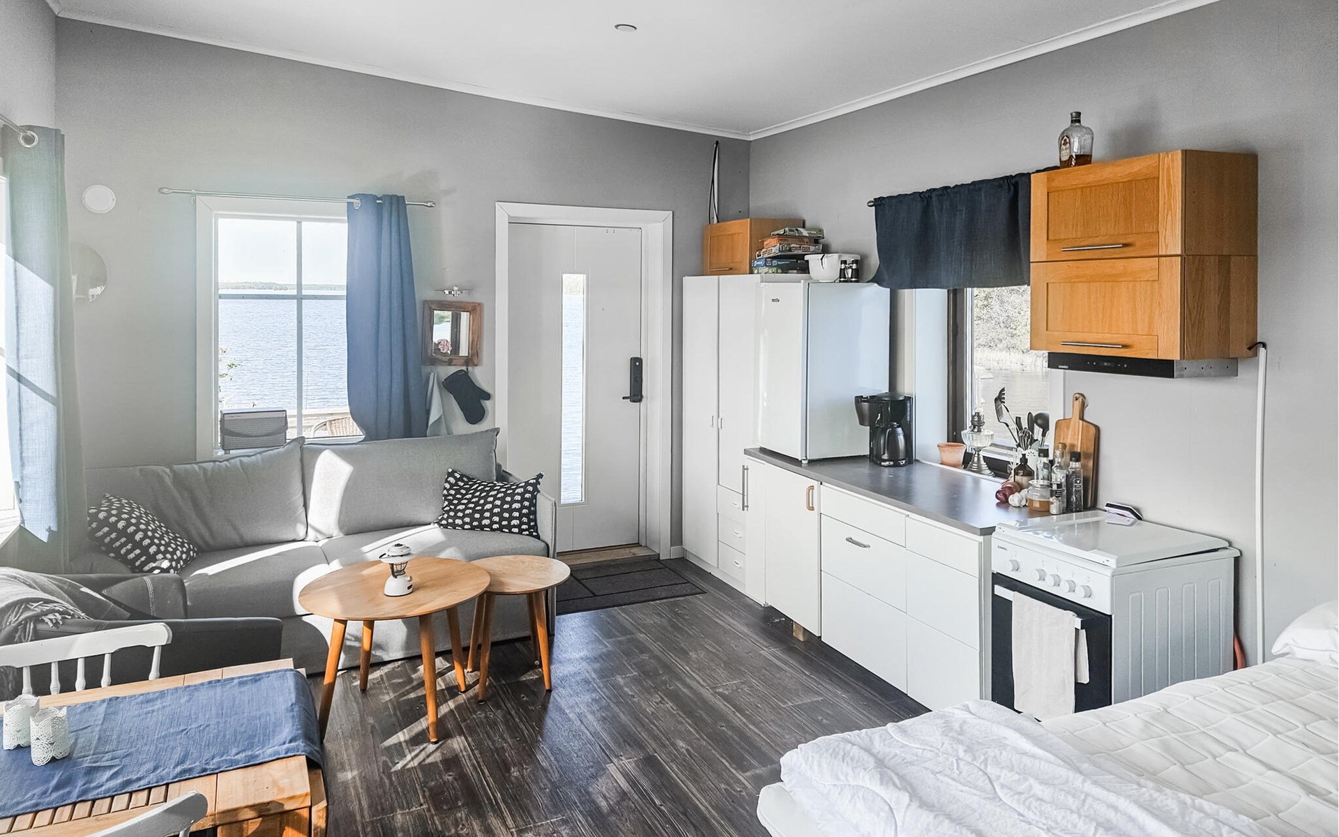 Geniet van de unieke, rustige sfeer van dit kleine huis op een privé-eiland midden in het Allgunnen-meer en laat de drukte van alledag achter je midden in de natuur. In het compacte huis vind je een praktische inrichting. De woonkamer is stijlvol en toch gezellig, ideaal om te ontspannen na een dag vol activiteiten. Het huis biedt een adembenemend uitzicht op het meer, waar je volop van kunt genieten vanaf het grote terras. Begin de dag met een kopje koffie buiten en luister naar de geluiden van de natuur. Gebruik de barbecue op het terras en bereid heerlijke maaltijden, waar je vervolgens van kunt genieten met een ononderbroken uitzicht op het water. Ontspan in de comfortabele zithoek of neem een verfrissende duik direct vanaf de privésteiger.