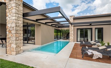 De luxe villa Silente ligt in Istrië, in het kleine stenen stadje Bale. Deze plaats draagt de titel van een van de mooiste juwelen van Istrië en ligt aan de westkust van Istrië. Istrië is een bekende toeristische bestemming voor binnenlandse en buitenlandse gasten die besloten hebben om een heerlijke vakantie in alle rust door te brengen en historische bezienswaardigheden en natuurlijke schoonheden te ontdekken. Als je jezelf en je familie wilt trakteren op een onvergetelijke vakantie, dan is dit het moment! Villa Silente zal je op het eerste gezicht verrukken dankzij de prachtige hedendaagse bouwstijl. Het is gebouwd in 2023 en biedt een woonoppervlakte van 200 m2. De totale oppervlakte van het pand is 874 m2. Het is 7,7 km naar de schone Adriatische Zee, wat niet ver is als je zeker met de auto reist. Je mag een bezoek aan het stenen strand van Colone zeker niet overslaan, waar je zoveel plezier zult hebben als je hartje begeert in je favoriete gezelschap. Het heeft twee mooi ingerichte slaapkamers met tweepersoonsbedden (160 x 200). De villa heeft ook twee badkamers met douchecabines. De woonkamer is echt iets speciaals, er staat een bank, een salontafel en een tv. Er is ook een romantische open haard en direct naast de woonkamer is er een directe uitgang naar het buitenterras met zitje. Je zult er zeker de ochtenden doorbrengen met koffie drinken en je favoriete boek lezen. Een eetkamer met eettafel en een moderne en volledig uitgeruste keuken zijn slechts een deel van de luxe die op je wacht! Het buitenterras biedt het beste: verfrissing op warme zomerdagen in een verwarmd zwembad van 27 m² en 1,4 meter diep. Er zijn 4 ligstoelen op het gazon om te ontspannen en tot rust te komen. Je kunt gebruik maken van een barbecue, een wasmachine en een strijkijzer. Een kinderstoel en een kinderbedje zijn beschikbaar voor kinderen. Extra diensten die op afspraak en tegen betaling worden aangeboden zijn: Kok, babysitter, schoonmaker, tuinman, transfer vanaf de luchthaven en privé-excursies. Dit historische stenen stadje ligt op een heuvel en wordt omringd door olijfgaarden en wijngaarden. Het pittoreske Istrische middeleeuwse stadje ligt op slechts 13 kilometer van Rovinj en 20 kilometer van Pula. Deze steden zijn ook de moeite waard om te bezoeken en te verkennen. Proef het heerlijke gastronomische aanbod in de restaurants en geniet als een koning! Welkom in de prachtige Villa Silente!