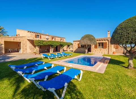 De harmonieuze pracht van het vakantiehuis in mediterrane stijl gaat binnen verder. Het lommerrijke terras leidt direct naar de uitnodigende eetkeuken met kookeiland en modern comfort. De mix van ongepleisterde breuksteen op de muren gecombineerd met warme vloertegels en zachte blauw- en grijstinten geven het interieur van het hele vakantiehuis een heerlijke lichtheid. Het landhuisgevoel is hier aangekomen in de 21e eeuw - dit geldt ook voor de open woon- en eetkamer, die met de keuken is verbonden door een dubbele houten deur. Smaakvolle meubels en fijne details dringen zich niet op, zelfs niet aan de meest attente gast. Tot acht personen, vrienden of zelfs twee gezinnen kunnen profiteren van de heerlijk ontspannen sfeer in de ruime huurfinca tijdens hun vakantie op Mallorca. Er zijn overigens vier liefdevol ontworpen tweepersoonskamers en drie individuele badkamers met inloopdouches en ingewikkelde tegeldetails. Dankzij de aangename kamers met airconditioning in de zomer en verwarmde kamers in de winter, waar de open haard in de woon/eetkamer de landelijke charme perfectioneert, kan het hele jaar door worden geboekt. Wanneer begint je ontspanning op Can Tian de Llevant? De natuurstenen boerderij Can Tian de Llevant met zijn oase-achtige tuin en zwembad van de beste kwaliteit wordt gekenmerkt door zijn unieke rustige locatie. Feestjes zijn daarom uitdrukkelijk niet toegestaan. Het betoverende landgoed ligt in het noordoosten tussen Manacor en Artà. De op een na grootste stad van Mallorca ligt op slechts 15 minuten rijden en je kunt uitgebreid winkelen in Manacor. De dichtstbijzijnde stranden in de uitgestrekte baai van Alcúdia liggen op ongeveer 15 kilometer afstand.