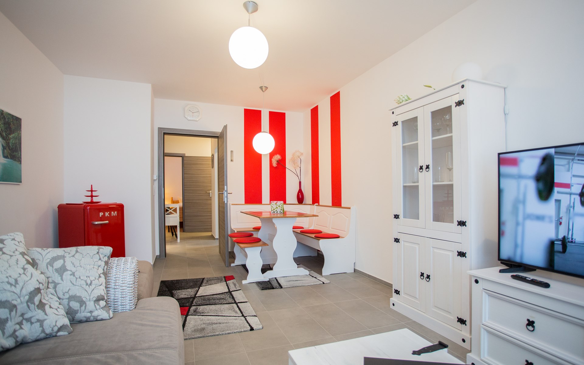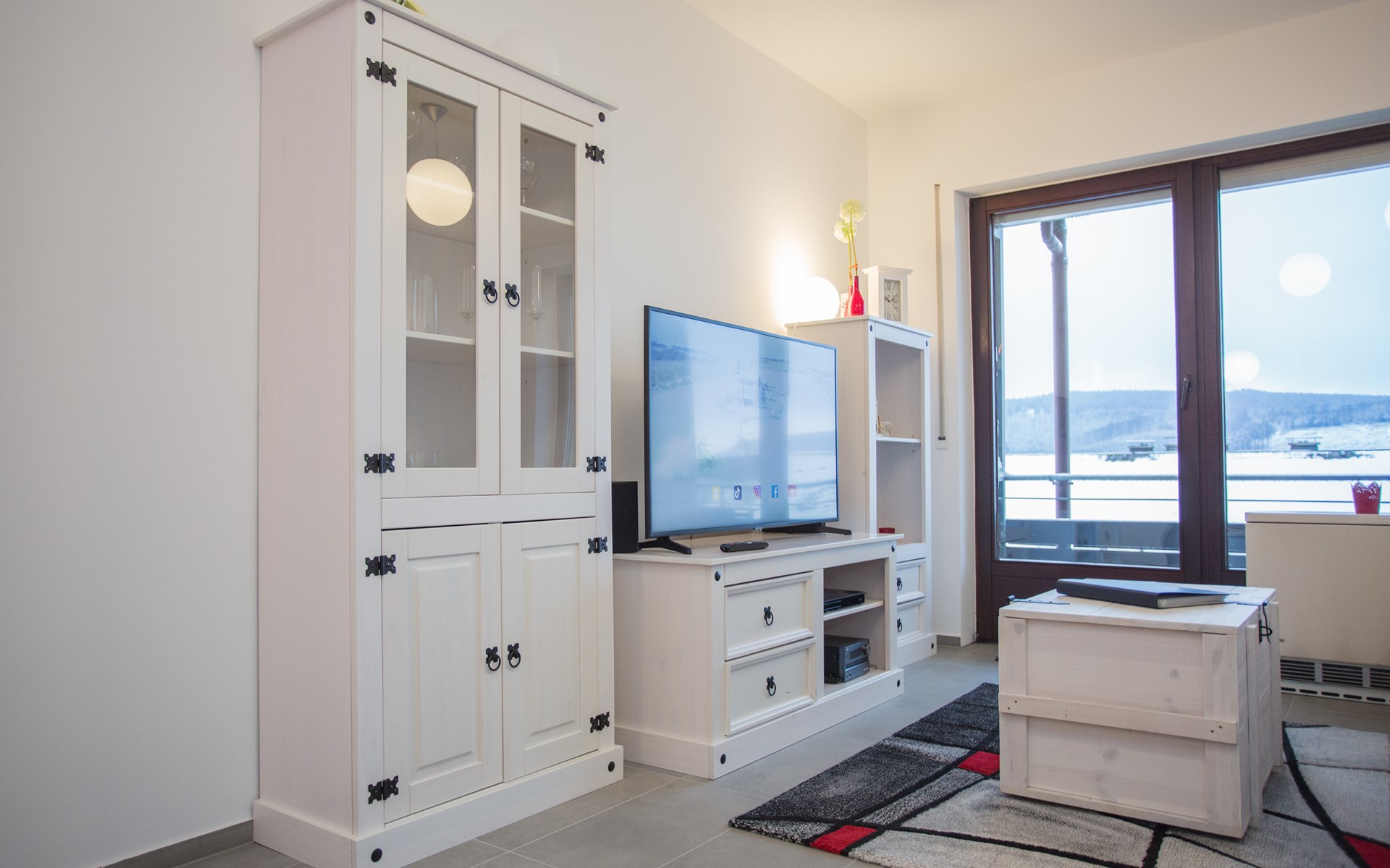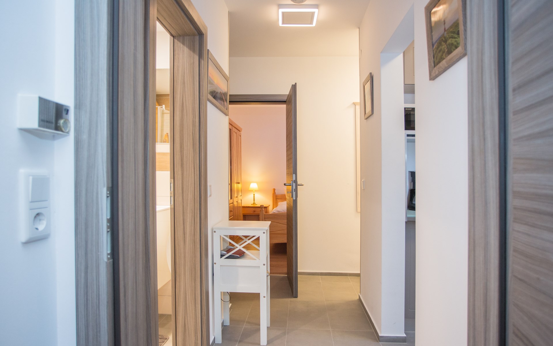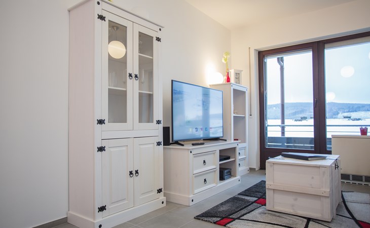 De woonkamer van het appartement heeft een zithoek met smart televisie (inclusief een blu-ray-/dvd-speler), een eethoek voor vier personen en een koelkast met vriesvakje. De aparte keuken is voorzien van een 4-pits keramische kookplaat, oven, magnetron, filterkoffiezetapparaat en waterkoker. De slaapkamer is ingericht met een tweepersoonsbed (160x200 cm), nachtkastjes en een kledingkast met voldoende opbergruimte. Het gehele appartement is voorzien van rolluiken, dus je kunt genieten van optimale verduistering. De badkamer is voorzien van een douche met glazen douchewand, toilet, badkamermeubel met spiegel en föhn. Het balkon van de accommodatie ligt op het zuidwesten en biedt een schitterend uitzicht. Het balkon is ingericht met een bank, tafel, ligstoel en droogrek. Het appartement beschikt over wifi, een kelderberging op dezelfde verdieping en een parkeerplaats. De eigen berging biedt voldoende ruimte om bijvoorbeeld de ski’s of mountainbikes op te bergen.