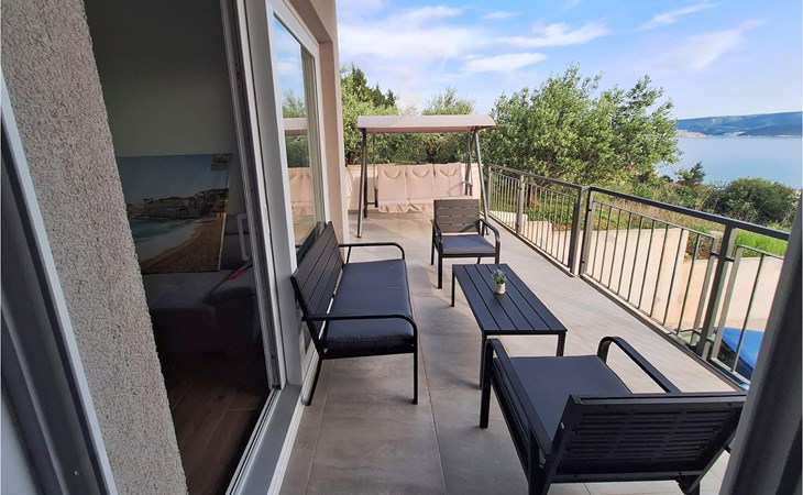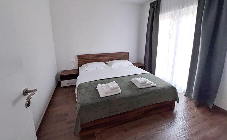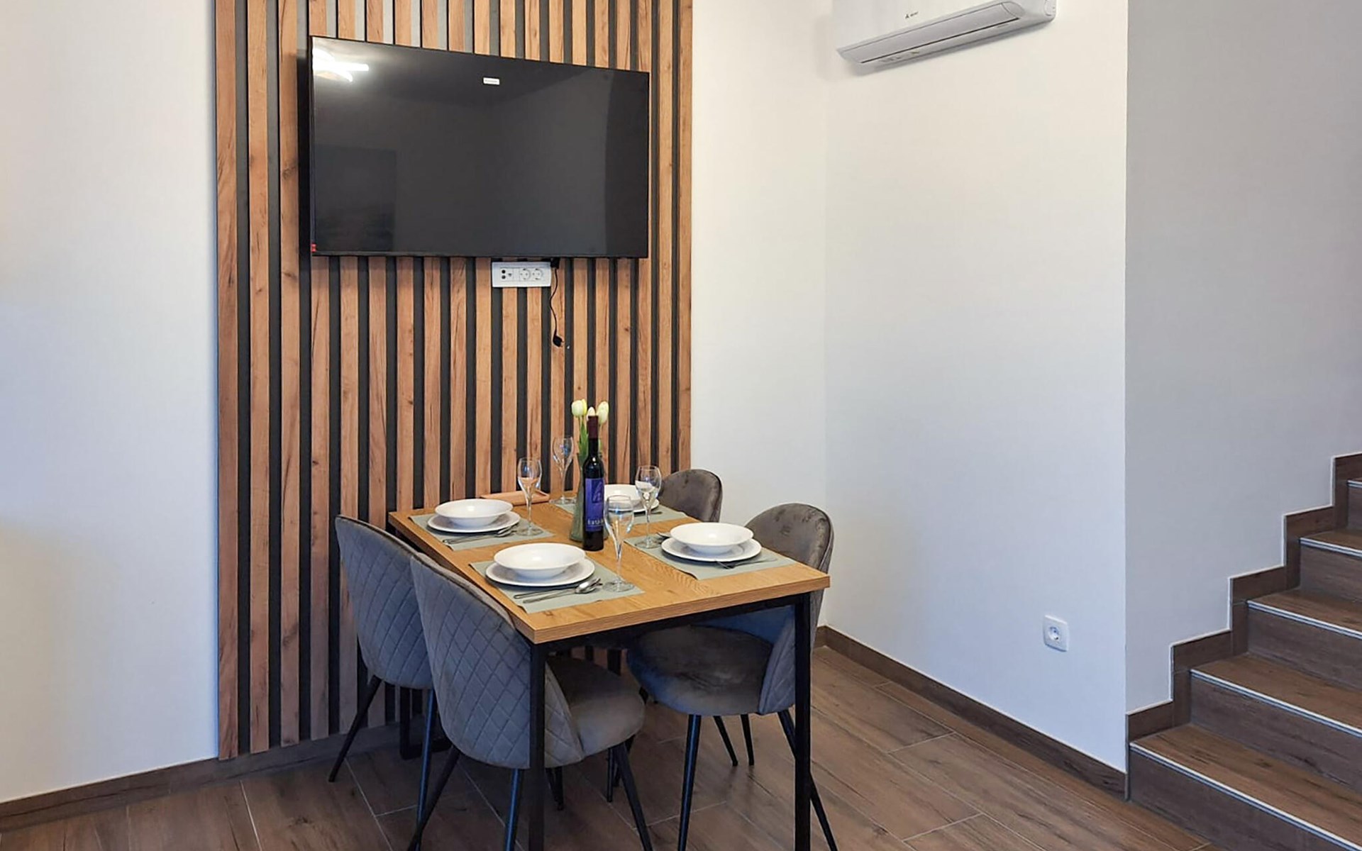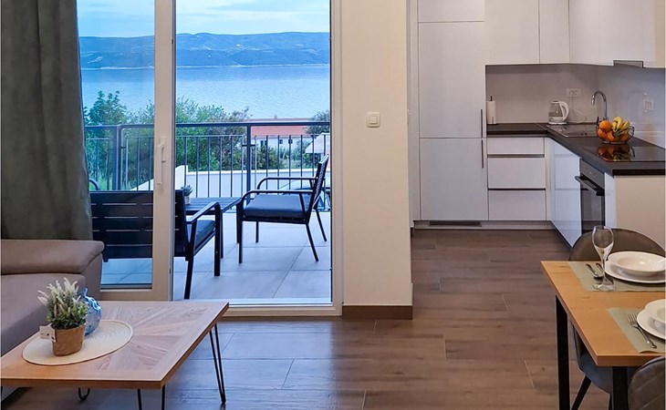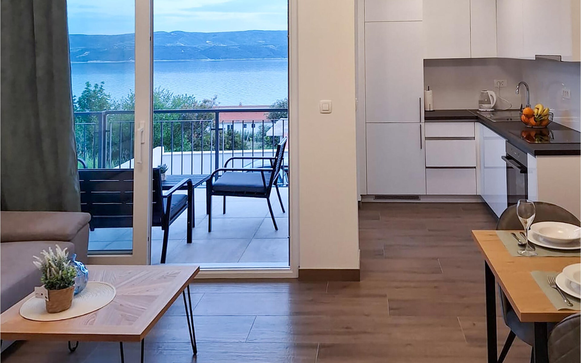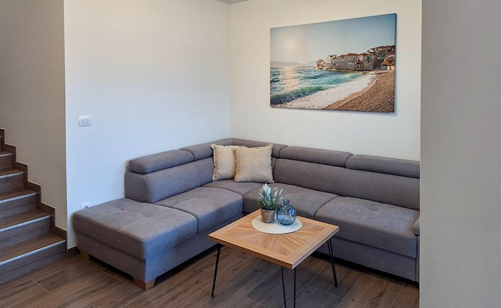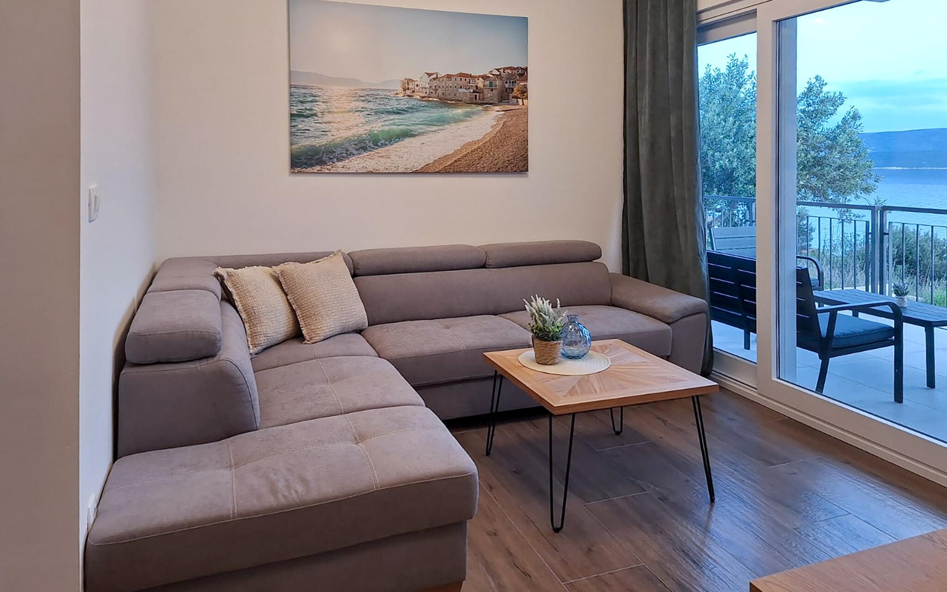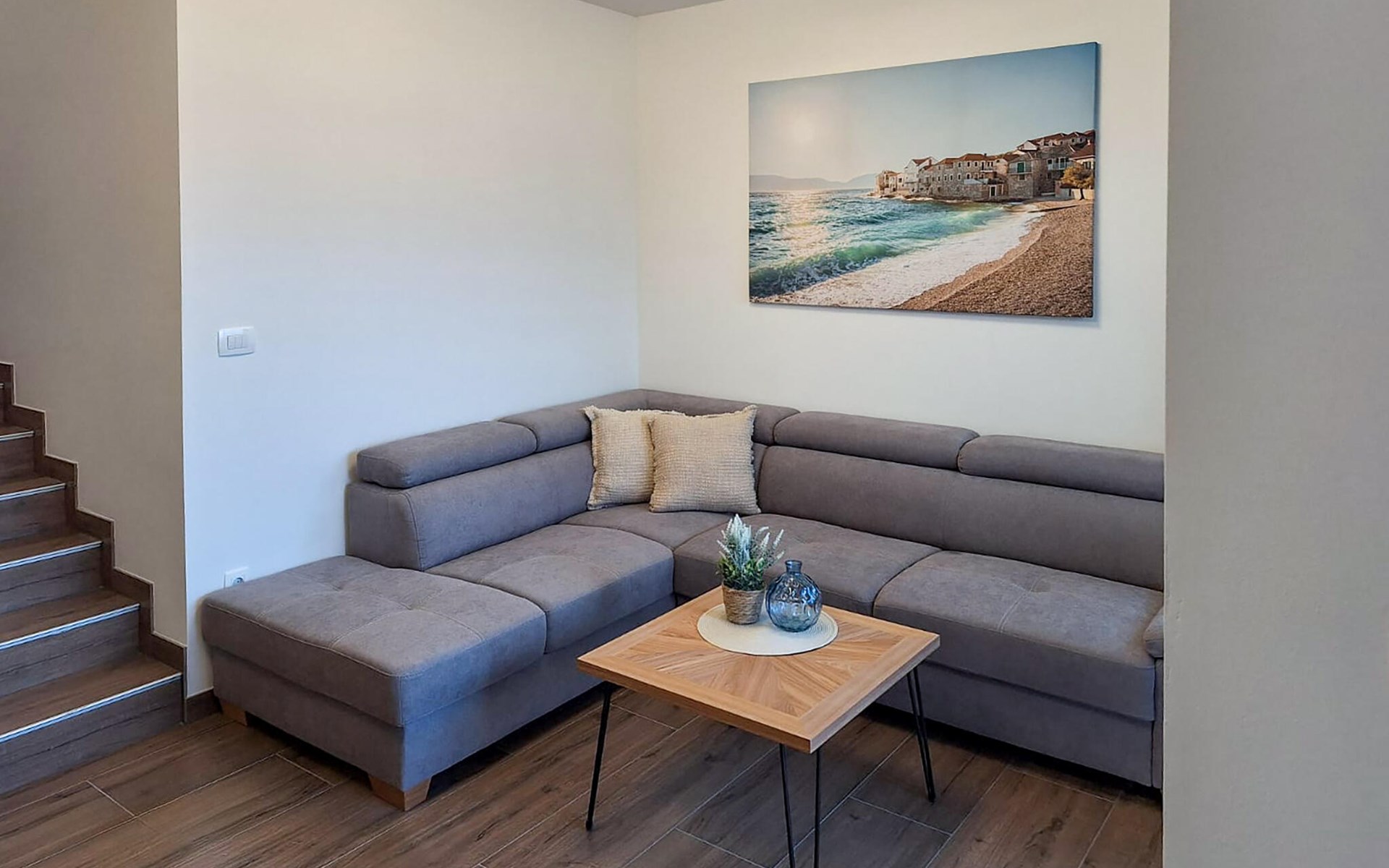 Dit moderne appartement biedt alles wat je nodig hebt voor een comfortabel verblijf. Profiteer van de ideale locatie op slechts een paar minuten lopen van het strand en geniet van de nabijheid van restaurants, cafés en winkels. Maak het jezelf gemakkelijk op de grote bank in de woonkamer, geniet samen van maaltijden aan de eettafel en bereid je favoriete gerechten in de keuken. Het appartement biedt ook directe toegang tot het terras met uitzicht op de Adriatische Zee.