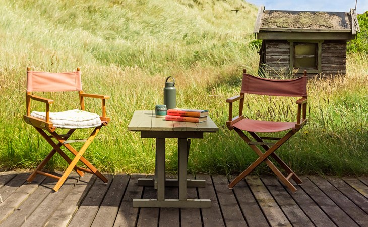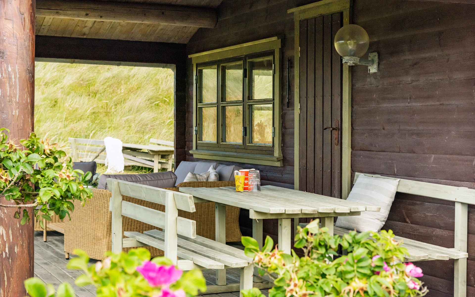 Beide terrassen bieden je hun charme, aan de ene kant kun je ontspannen in de zon achter het huis tussen de duinen, samen eten of kijken naar prachtige zonsondergangen en genieten van de kleuren op de veranda voor het huis.