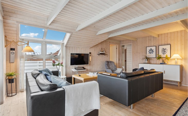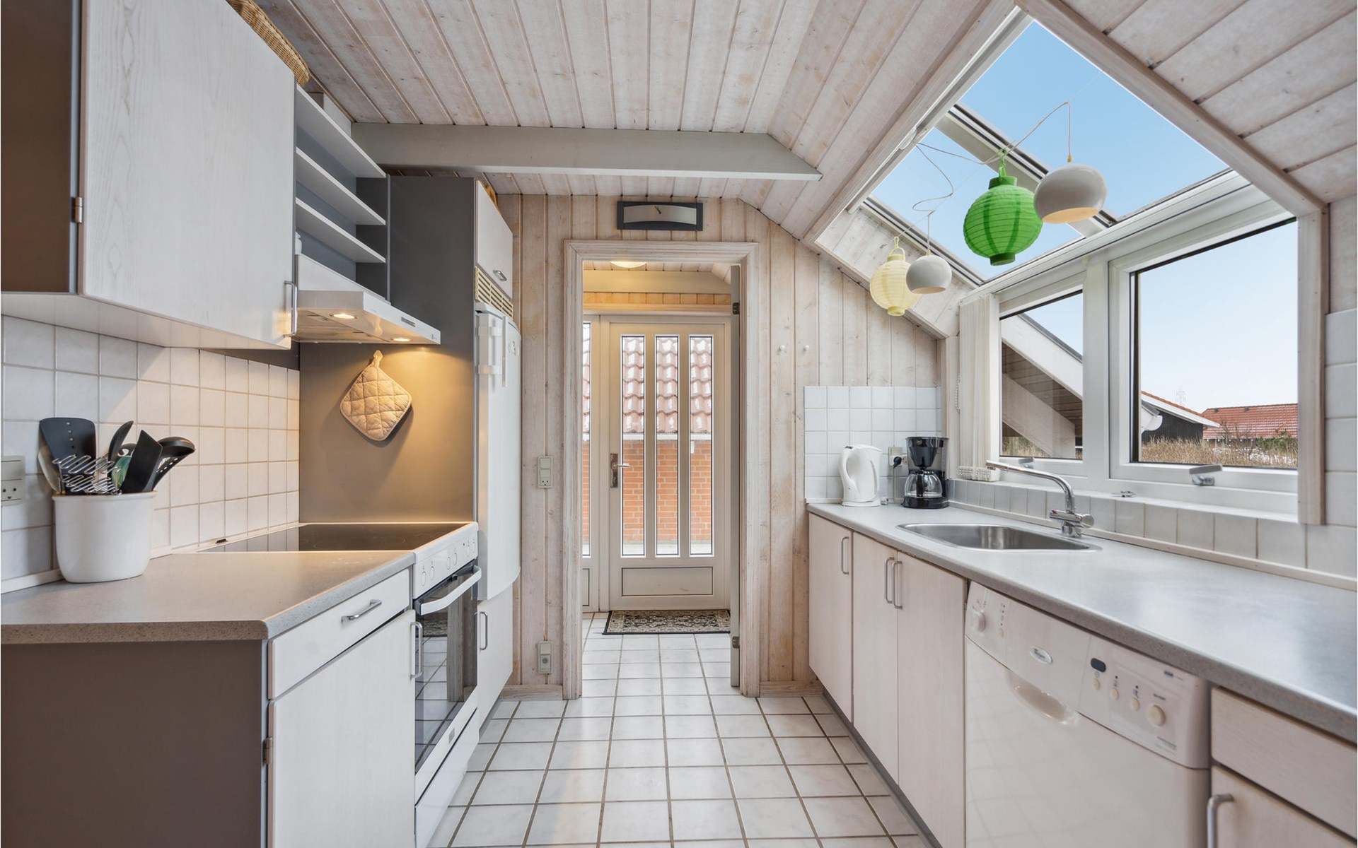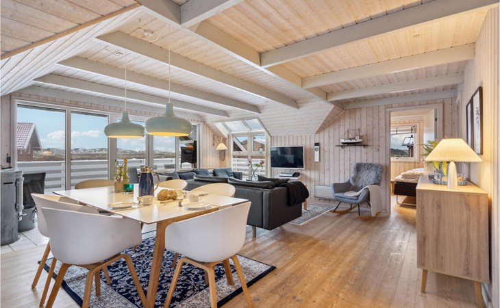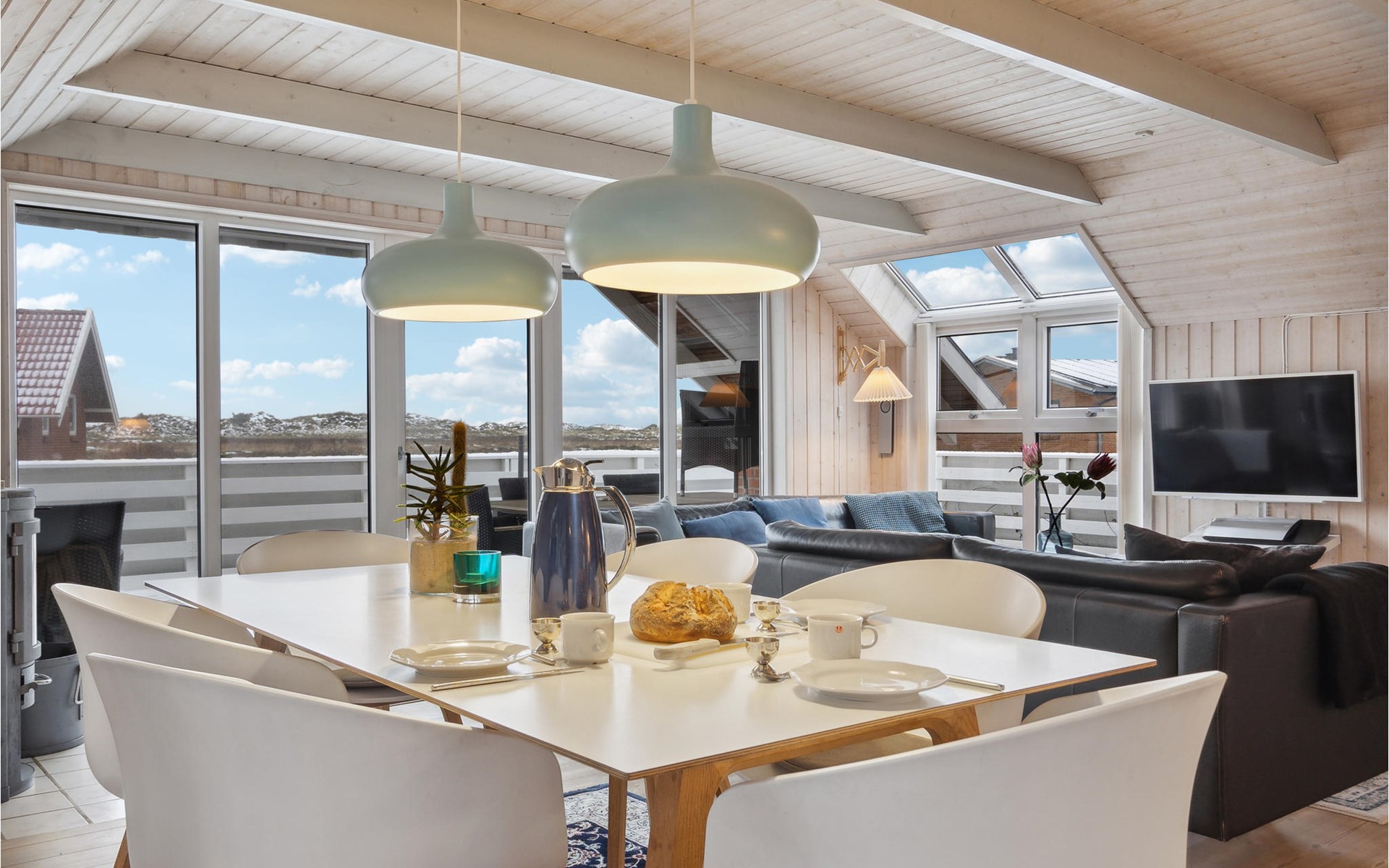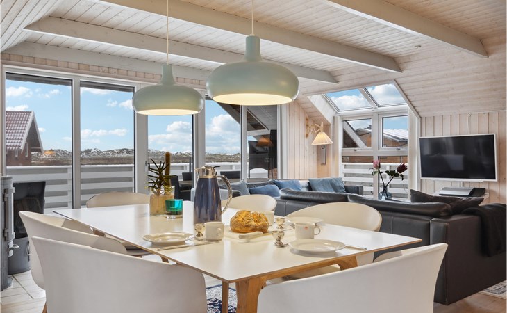Op een prachtige locatie tussen kilometers Noordzeestrand en Ringköbing Fjord, belooft dit mooie vakantiehuis in Nörre Lyngvig je een geweldige familievakantie. Stap binnen en geniet van het lichte en Scandinavische interieur, dat het huis een gezellige sfeer geeft. Steek het vuur aan in de houtkachel en voel je meteen thuis. Na je activiteiten, wandelingen of fietstochten kun je ontspannen in de sauna of genieten van de laatste uurtjes zon en de vakantielucht op het ruime houten terras.