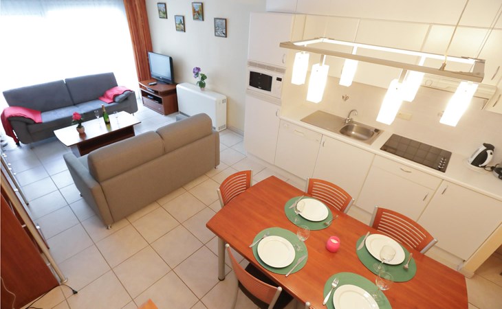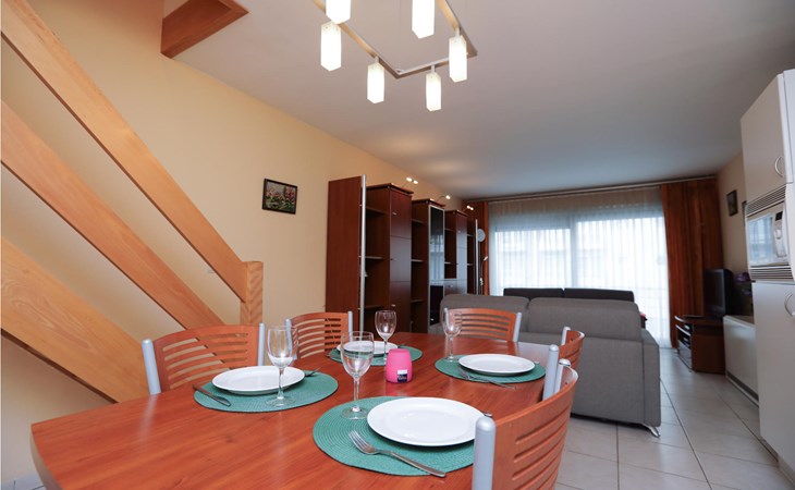 Dit appartement overtuigt door zijn goede indeling en is zeer geschikt voor een vakantie voor een stel of een klein gezin. De ramen van vloer tot plafond laten veel licht binnen in de gezellige woonkamer met open keuken en eethoek. Hier kunt u heerlijk ontspannen na een lange dag vol activiteiten. De 2 slaapkamers bevinden zich op de 1e verdieping en zijn bereikbaar via een goede trap. Ook staat er een moderne badkamer tot uw beschikking. Ook uw huisdieren zijn hier welkom. In de zomer (half juli tot eind augustus) lonkt het mooie gemeenschappelijke zwembad om af te koelen. Op het terras kunt u genieten van de zonnestralen en de prachtige omgeving.