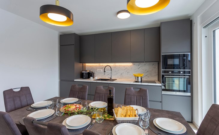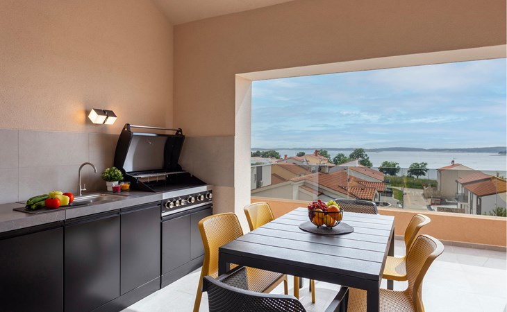 Je kunt genieten van de Kroatische zon op het terras met zithoek of ontspannen in de grote whirlpool. s Avonds kun je gebruik maken van de barbecue en de dag afsluiten met uitzicht op de glinsterende zee. Twee andere balkons nodigen je uit om te zonnebaden of privé te lezen.