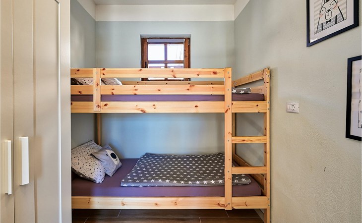 Er zijn ook nog twee slaapkamers met tweepersoonsbedden, een kinderkamer met stapelbed en een gastentoilet.