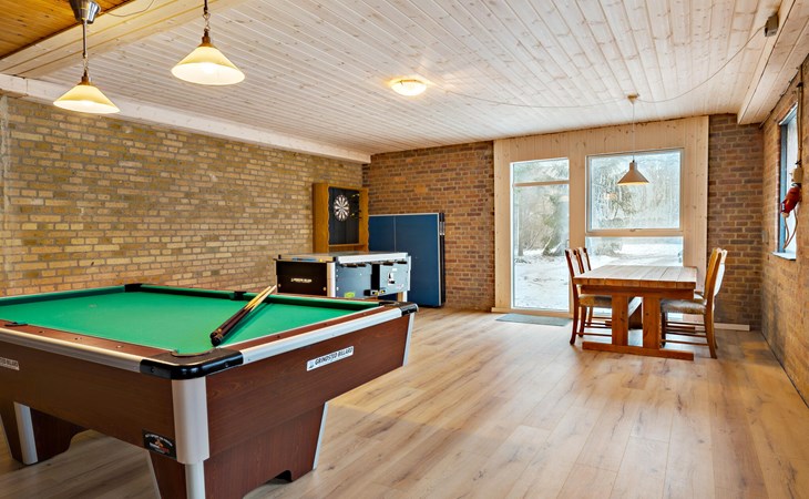 Dit gezellige vakantiehuis met activiteitenruimte verwelkomt je in het hart van Jutland.