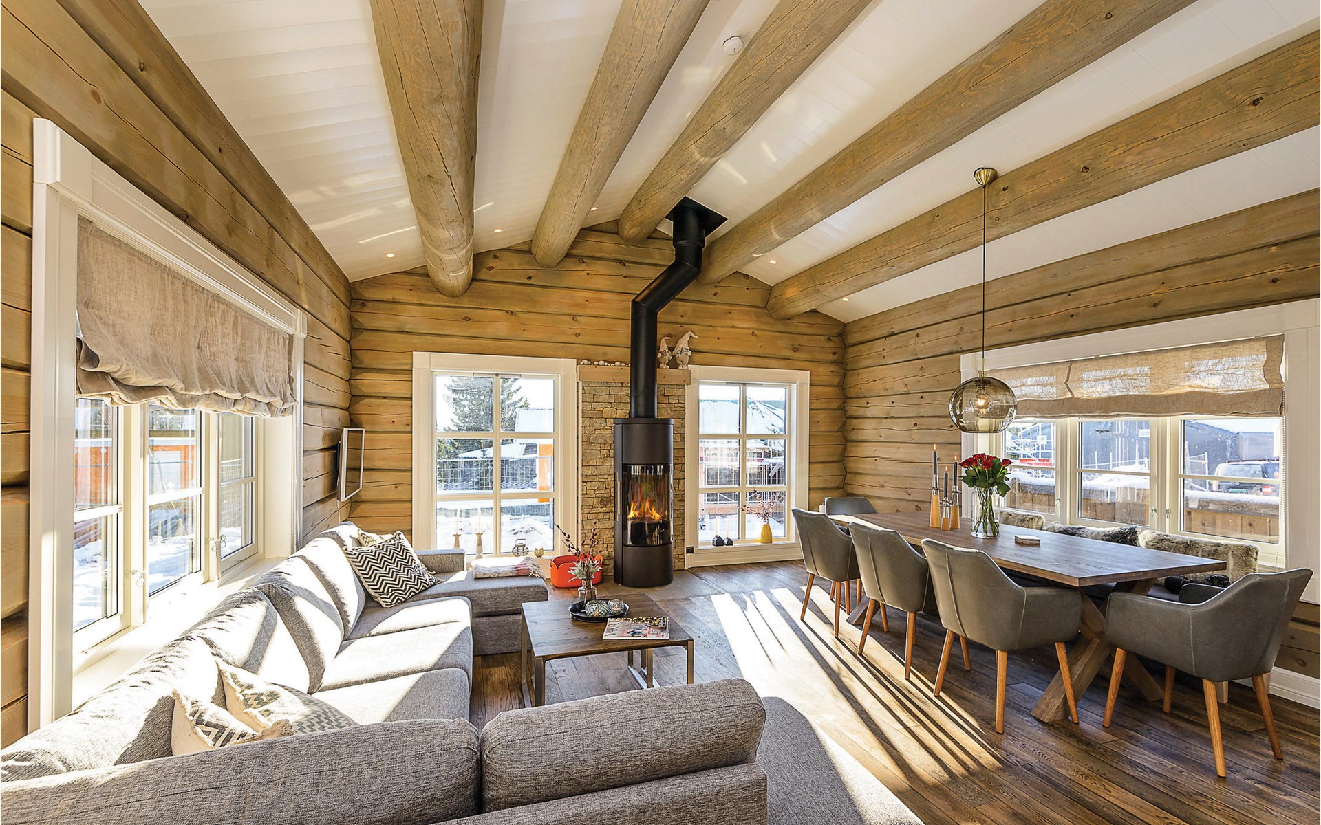 Zeer mooi houten huis met veel ruimte voor het hele gezin, gelegen in het hart van Sjusjøen.