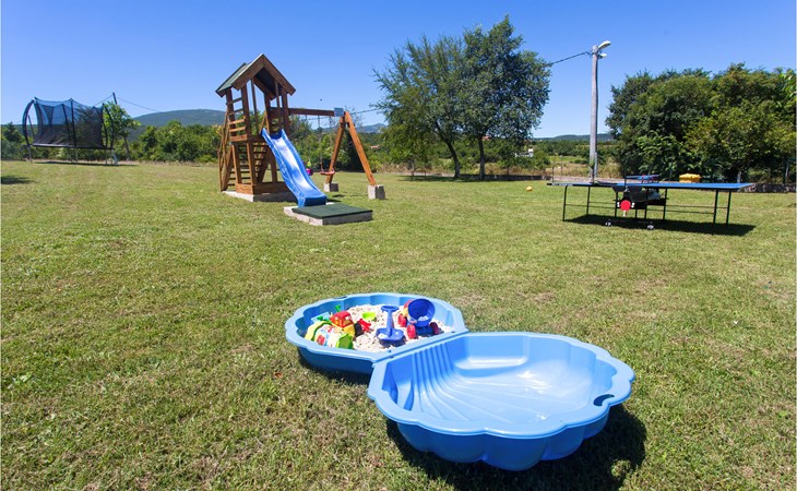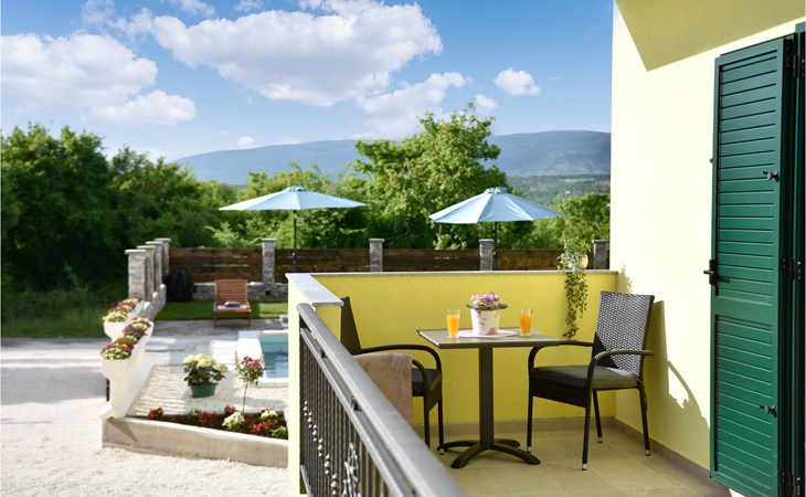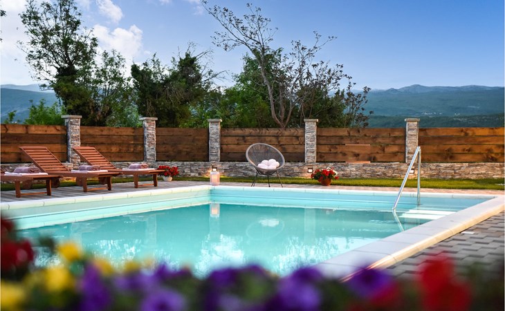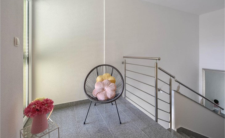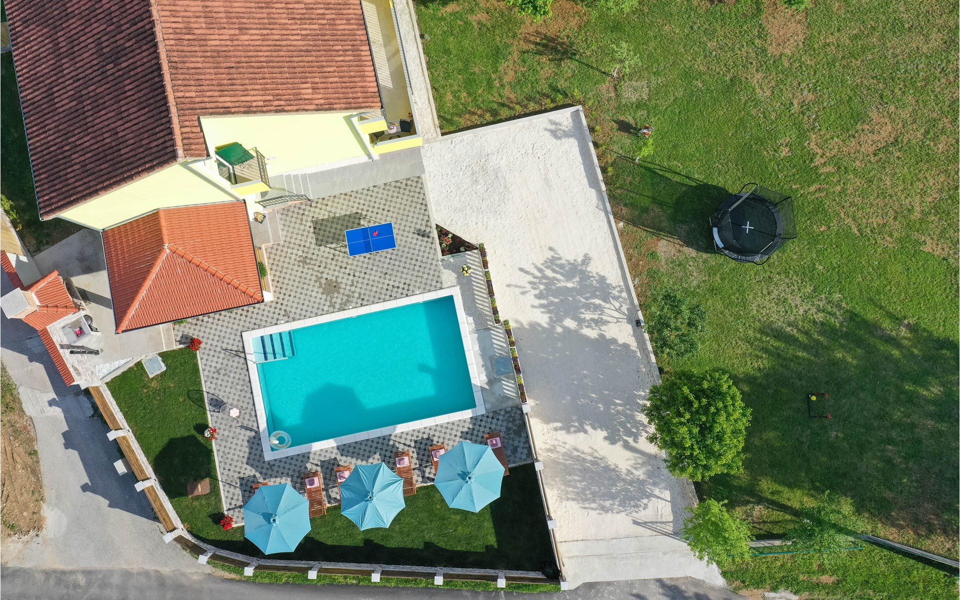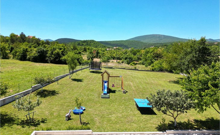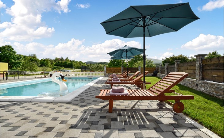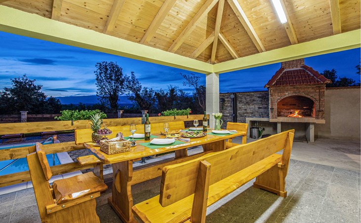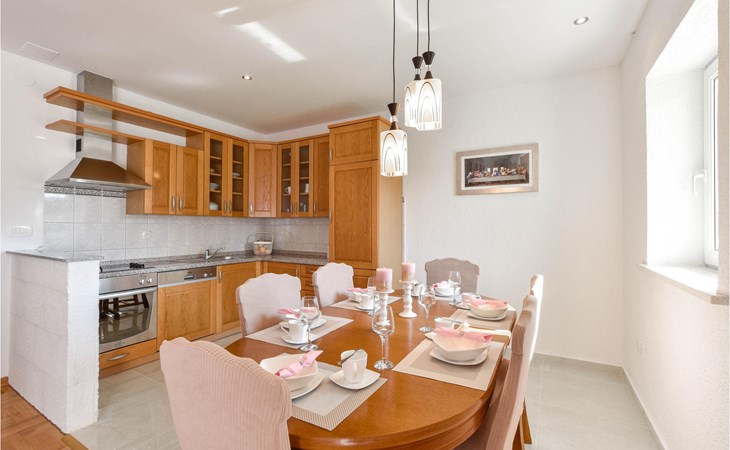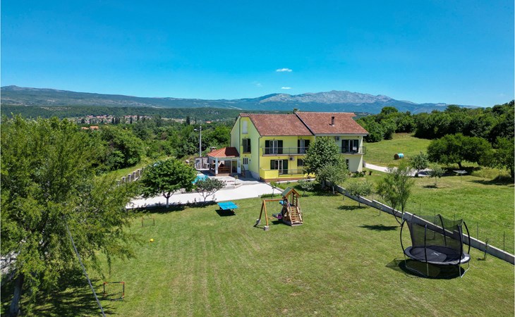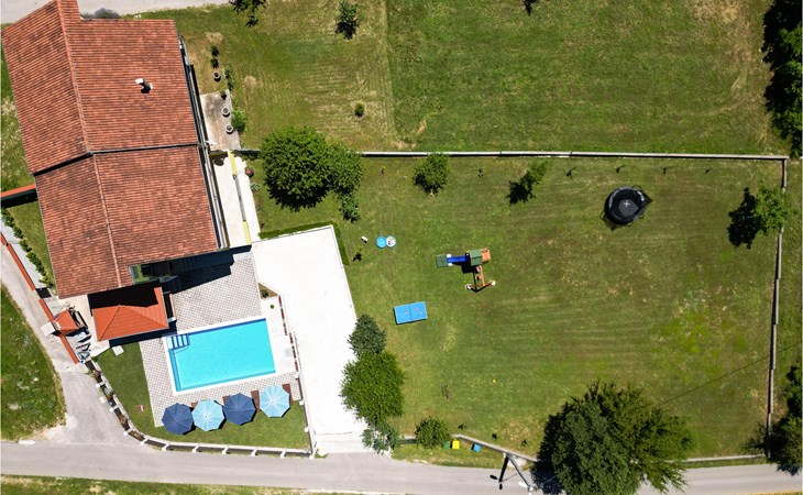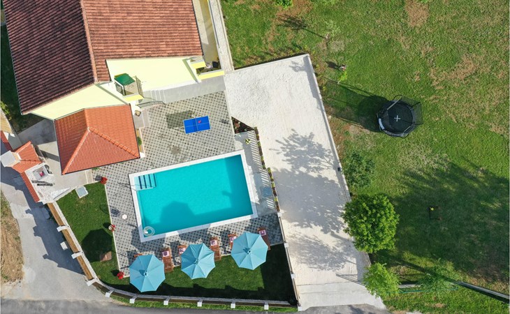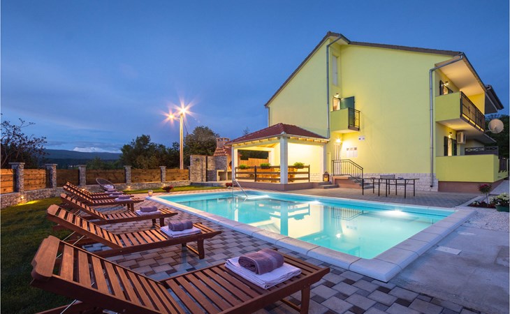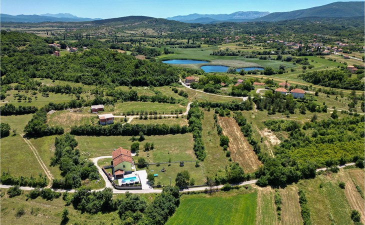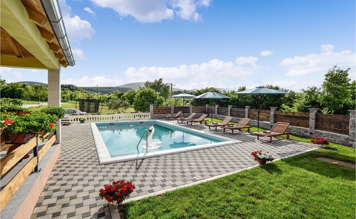 Dit vakantiehuis met zwembad ligt in het achterland van Dalmatië. Het interieur is verdeeld over twee verdiepingen, terwijl op het onderste gedeelte een woonkamer met keuken en twee badkamers is, op de eerste verdieping zijn er vier slaapkamers en een badkamer. De omheinde tuin biedt een zwembad, ideaal voor verfrissing op warme zomerdagen.