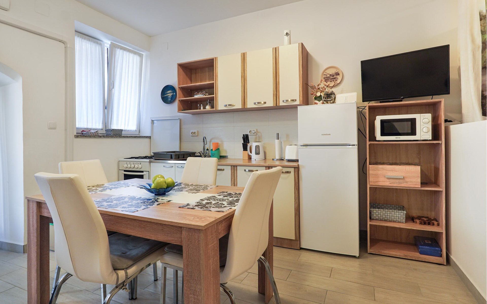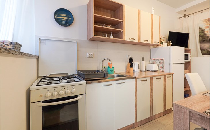 Dit liefdevol ingerichte appartement op de begane grond verwelkomt je dicht bij het strand en op loopafstand van alle voorzieningen van de kustplaats Volosko. Bereid hier je maaltijden met verse producten van de markt en plan je activiteiten in de gezellige woonkamer. Na een veelbewogen dag kun je je vermoeide benen laten rusten op de bank, een film streamen of jezelf onderdompelen in een goed boek.