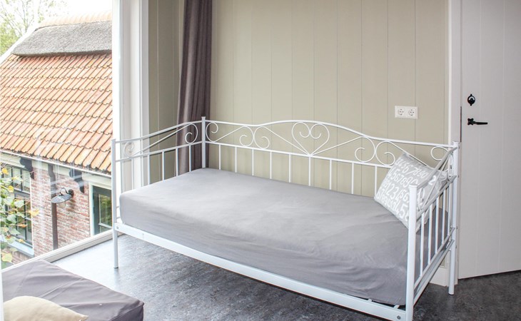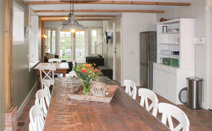 De grootste flat in de koeienstal is geschikt voor maximaal 8 personen. Dit appartement ligt in Wijdenes vlakbij het IJsselmeer. Geniet van een comfortabel verblijf in deze luxe flat, je kunt als gast gebruik maken van de sauna. De gezellige, ruime woonkamer en keuken zijn heerlijk om tijd in door te brengen. De keuken heeft een vaatwasser en een groot fornuis met oven om een heerlijke maaltijd te bereiden voor grotere groepen. Er zijn 2 bedden op de hooizolder en 3 slaapkamers met bedden voor 2 personen. Er is een ruime badkamer met toilet, 2 wastafels, bad en aparte douche. Geniet van de zon in de grote tuin aan de achterkant van het huis, er is ook een pleintje aan de voorkant.
