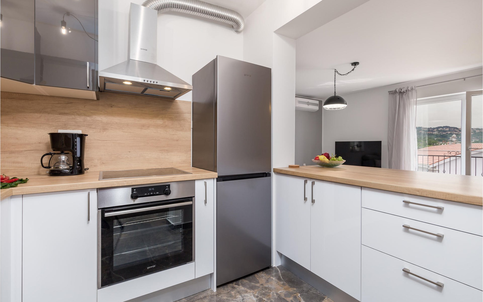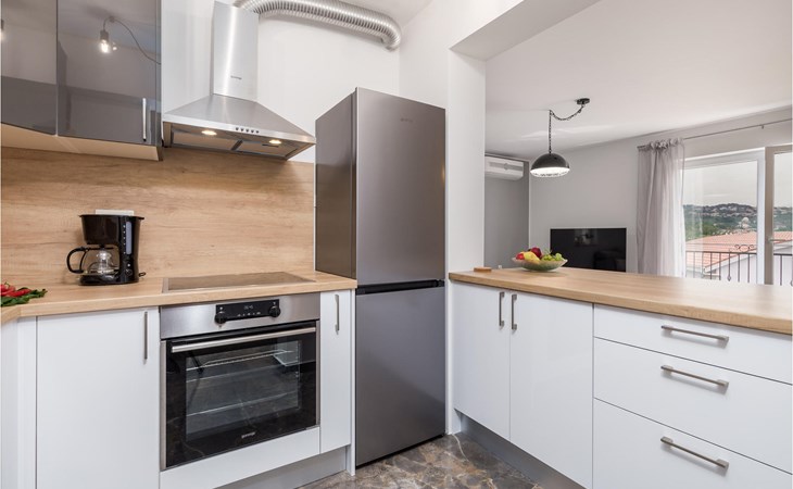 Het appartement verwelkomt zijn gasten op de 1e verdieping van een huis en biedt een prachtig uitzicht op zee vanaf het terras. Je hebt de beschikking over 2 slaapkamers en 2 badkamers. Met zijn moderne en aantrekkelijke inrichting is het appartement de ideale plek voor een ontspannen vakantie op elk moment van het jaar. Dankzij de airconditioning kun je rekenen op aangename kamertemperaturen, zelfs in hete zomers.