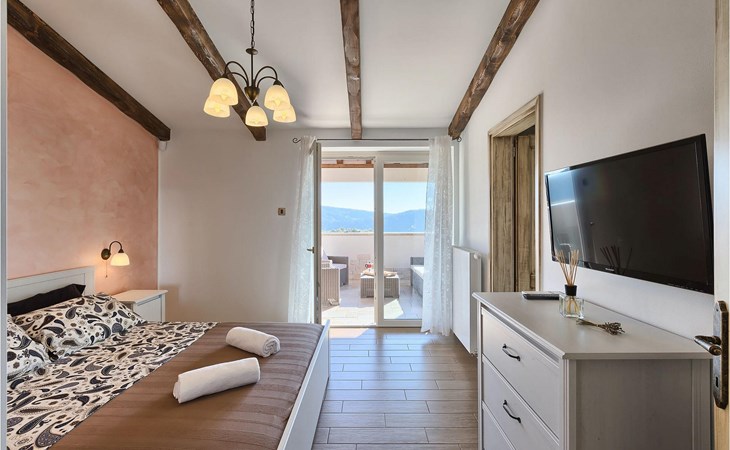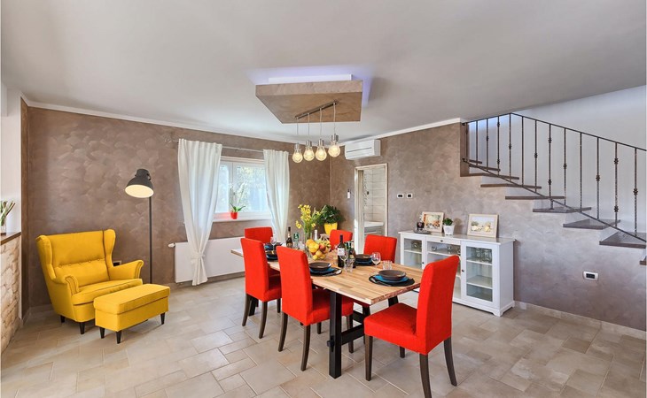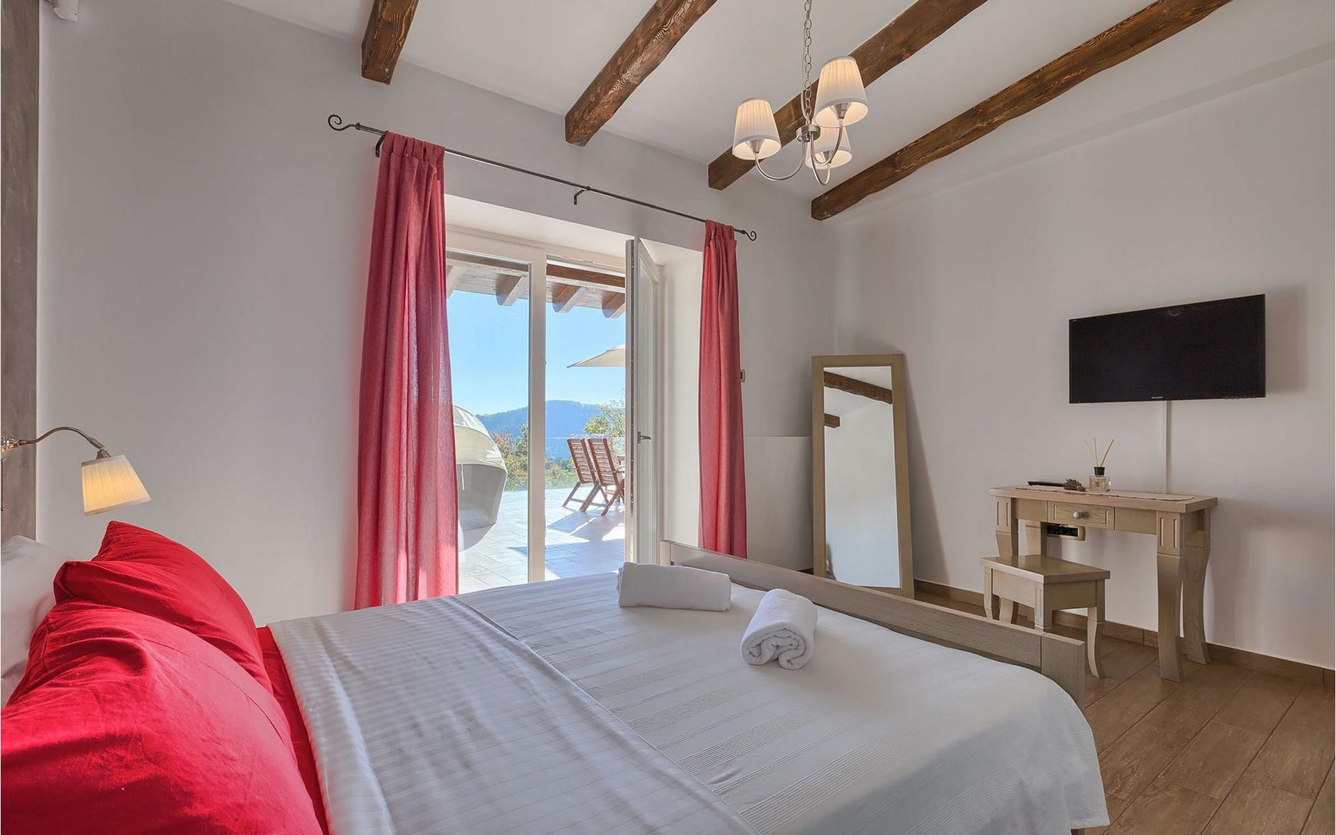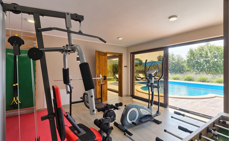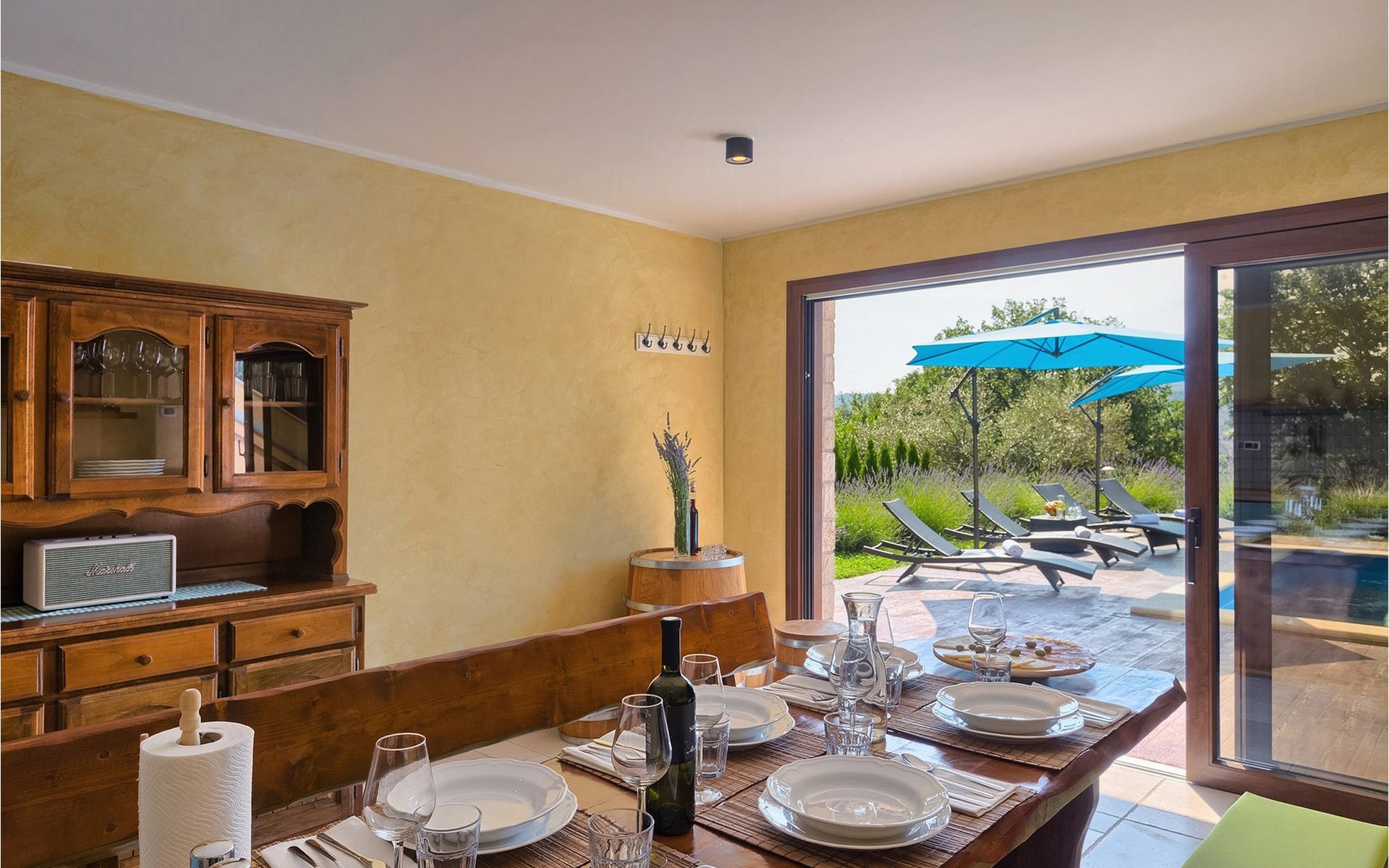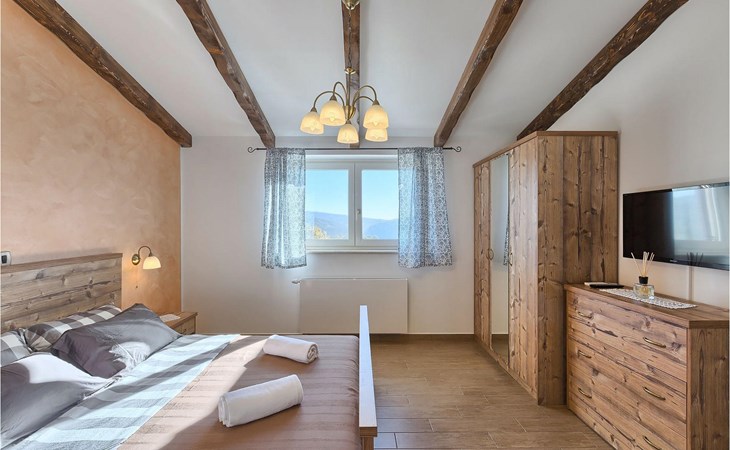 De kamers zijn verdeeld over 3 verdiepingen. Op de begane grond is er een open woon- en eetruimte met een open haard omringd door comfortabele banken en fauteuils. Hier vind je ook een elegante keuken met een kookeiland, evenals een slaapkamer met een tweepersoonsbed en een eigen badkamer. Zowel de keuken als de slaapkamer hebben directe toegang tot het uitnodigende terras, waar je een gezellige lounge en eethoek vindt. Nog eens 2 slaapkamers zijn verdeeld over de bovenverdieping, elk met een tweepersoonsbed en een eigen badkamer. Eén slaapkamer komt direct uit op het balkon, waar je elke ochtend kunt genieten van het adembenemende uitzicht. De kelder is verdeeld in twee eenheden. In de ene is er een gezellige taverne met een open haard en een grote eettafel. In de tweede is er een speelkamer, een kleine fitnessruimte en nog een badkamer. De grote glazen wand leidt van deze ruimte naar het prachtige terras bij het zwembad, met magisch uitzicht over het platteland. Er is ook een gemetselde barbecue in de ruime, zorgvuldig onderhouden tuin, waar je je eigen versie van traditionele specialiteiten kunt bereiden. Of u nu de regio wilt verkennen, wilt genieten van de lokale gastronomie en cultuur of gewoon wilt ontspannen met uw familie en vrienden, Villa Brazzana zal niets te wensen overlaten.De luxe Villa Brazzana ligt in het rustige dorpje Pracana in de directe omgeving van Buzet, in het hart van Istrië. Centraal Istrië staat bekend om zijn kleine, pittoreske, middeleeuwse stadjes en prachtige heuvellandschap. Het oude, historische centrum van Buzet heeft een prachtige ligging op een heuvel boven de vruchtbare vallei van de langste rivier van Istrië, de Mirna. Vandaag de dag is Buzet algemeen bekend als de stad van de truffels, omdat de bossen langs de Mirna bijzonder rijk zijn aan deze zeer gewaardeerde paddenstoelen. Met zijn uitstekende keuken, exquise Malvasia en Teran variëteiten, rijke culturele en historische erfgoed en adembenemende natuurlijke schoonheid, is deze regio de perfecte bestemming voor een echte ervaring van het traditionele Istrië.