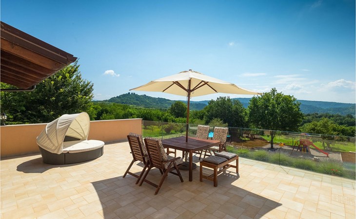 In het hart van centraal Istrië, te midden van beboste heuvels hoog boven de Mirna vallei, ligt de prachtige Villa Brazzana, waar u kunt genieten van de authentieke Istrische sfeer en traditionele gastronomie. Vanuit de villa, die op een moderne manier is ontworpen, maar ook in harmonie met de natuur, heb je een uitstekend uitzicht over de hele omgeving.