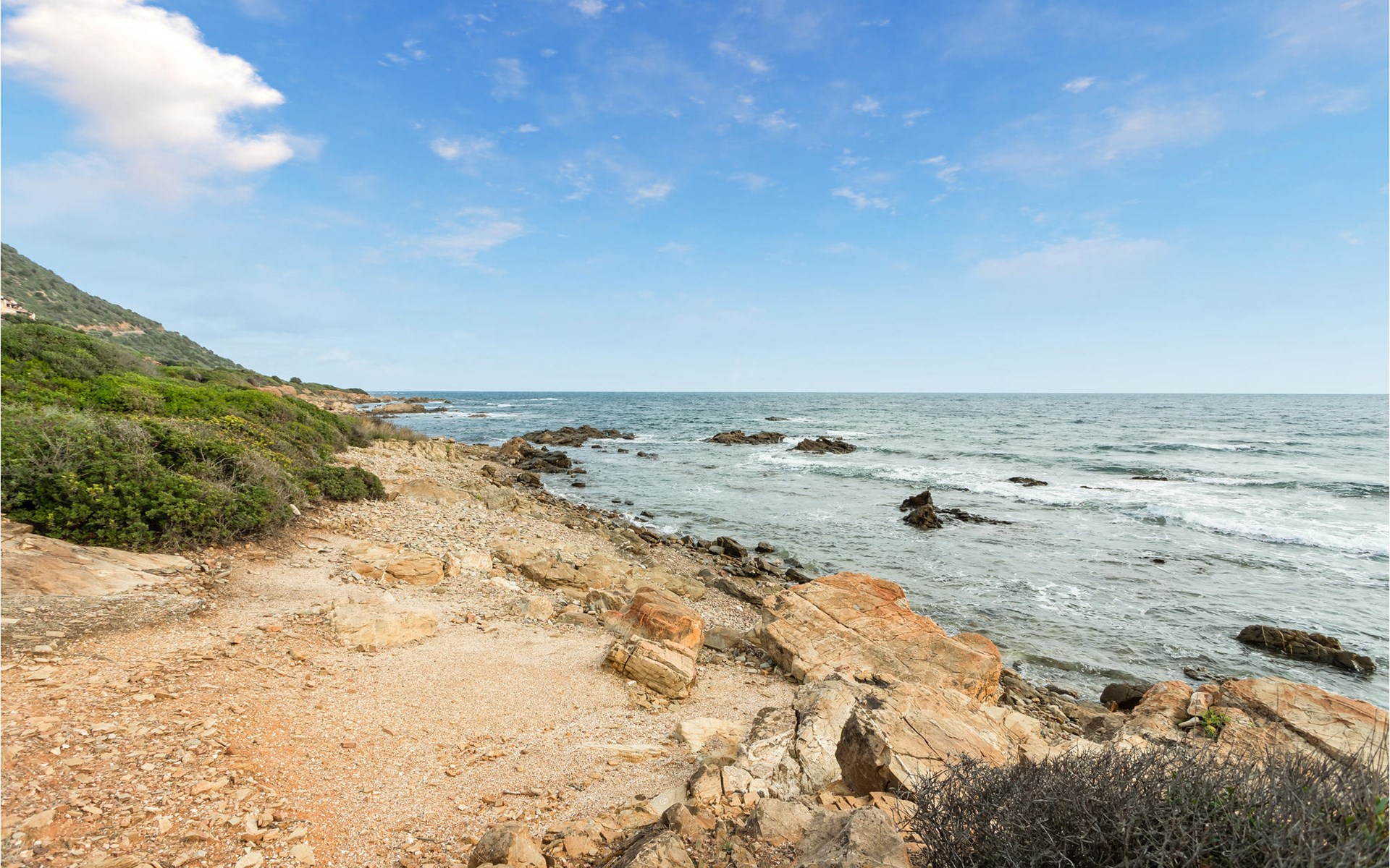 Rijtjeshuizen in een door groen omgeven residentie niet ver van het strand in Villaputzu aan de zuidoostkust van Sardinië ten noorden van de Costa Rei.