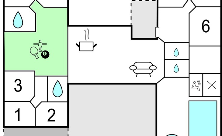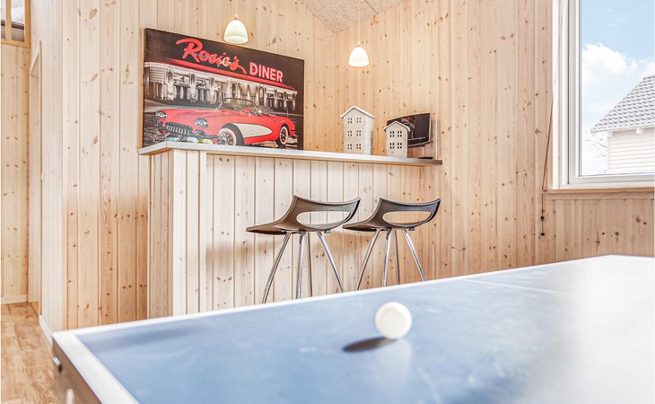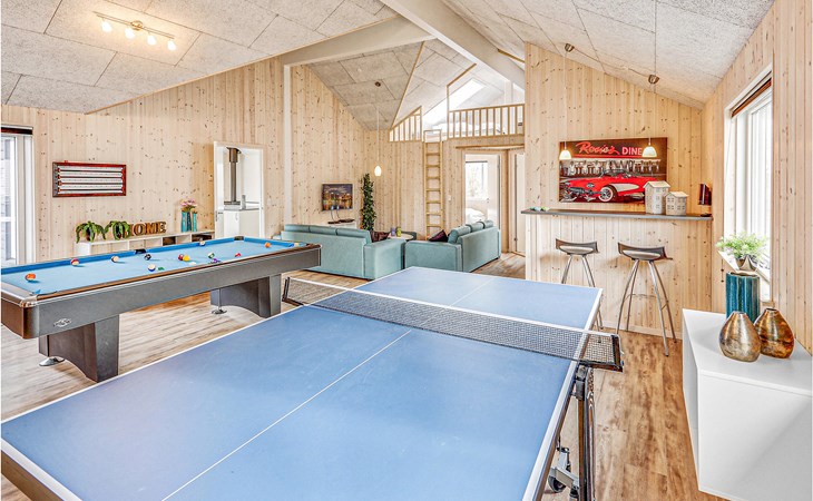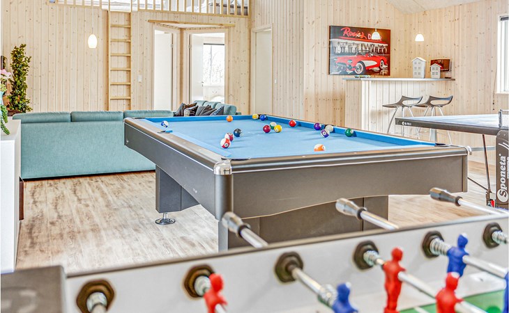 Hier is het vakantiehuis voor die speciale vakantie. Het huis is ingericht met comfortabel modern meubilair waar u echt kunt ontspannen en gezellig bij elkaar kunt zitten. Er is hier een interessante recreatieruimte met een gecombineerde pool- en biljarttafel, tafeltennis, darts en tafelvoetbal. Er is ook een bar met een koelkast zodat u kunt genieten van een koel verfrissend drankje. Er is ook een zespersoons spa bij het mooie zwembad en toegang tot de rustgevende sauna - volop wellness hier. Mooi groot terras met goed tuinmeubilair. Funen is een prachtig vakantie-eiland, in Bogense kunt u langs de haven en jachthaven wandelen en genieten van de maritieme sfeer. Akonto verbruik en eindschoonmaak dienen samen met de overige verbruikskosten in het huis betaald te worden. Beddengoed, handdoeken, kinderbedje en stoel kunnen tegen betaling gehuurd worden bij het plaatselijke kantoor.
