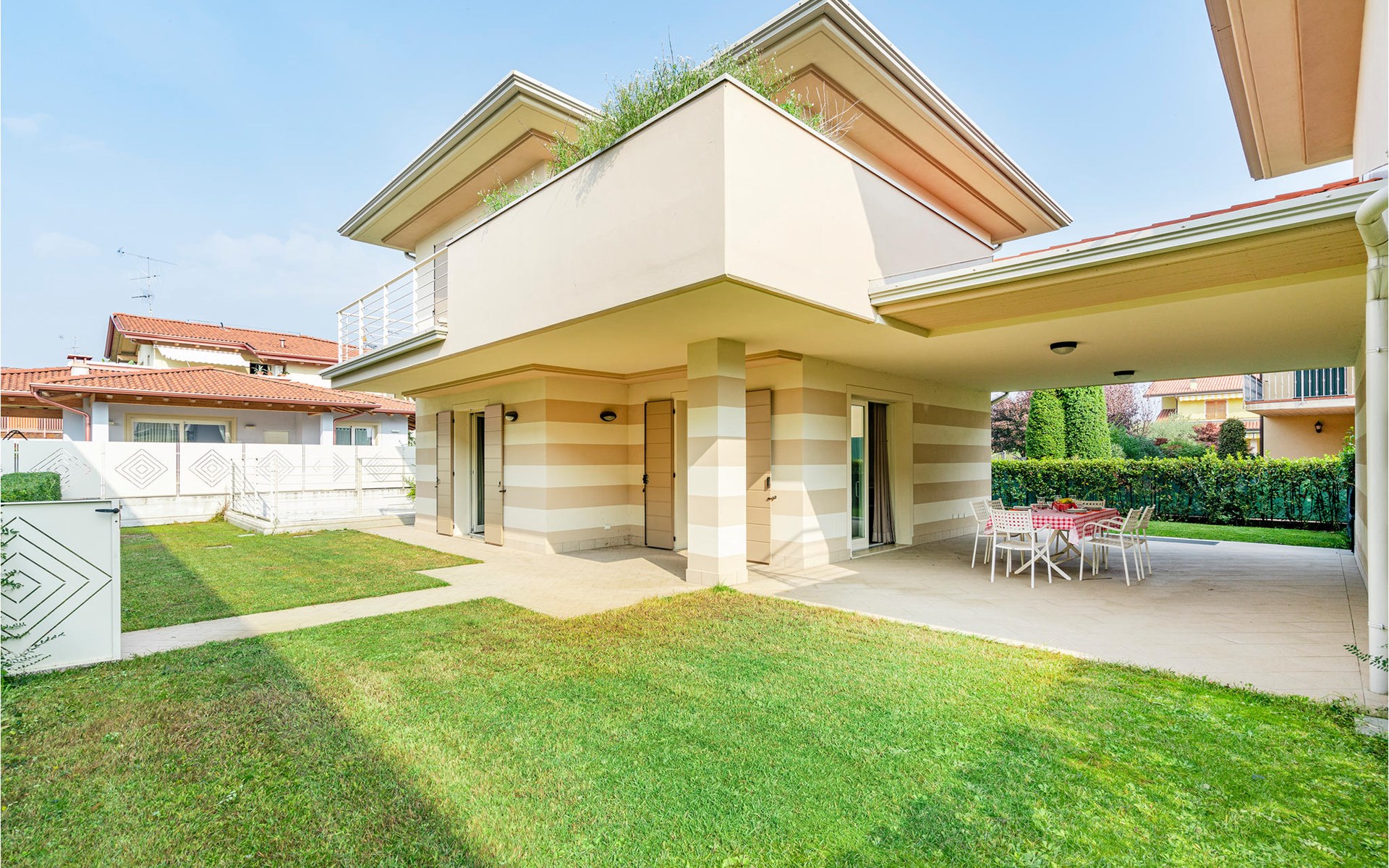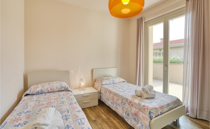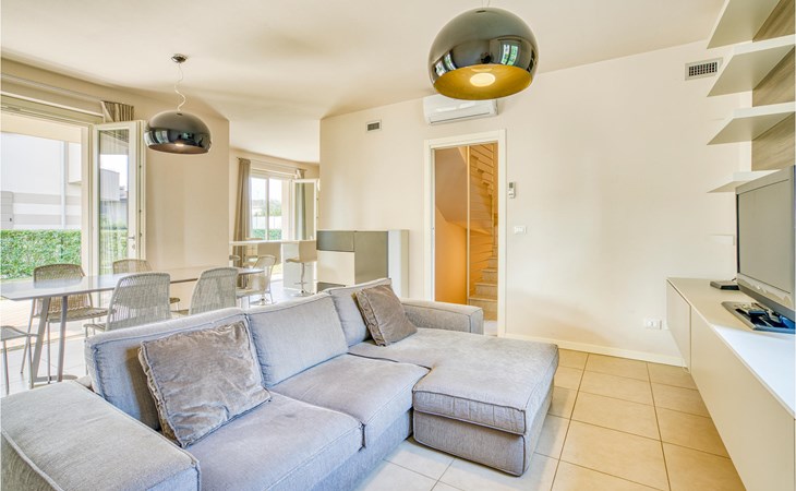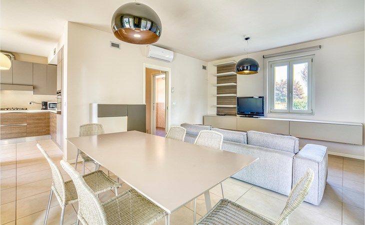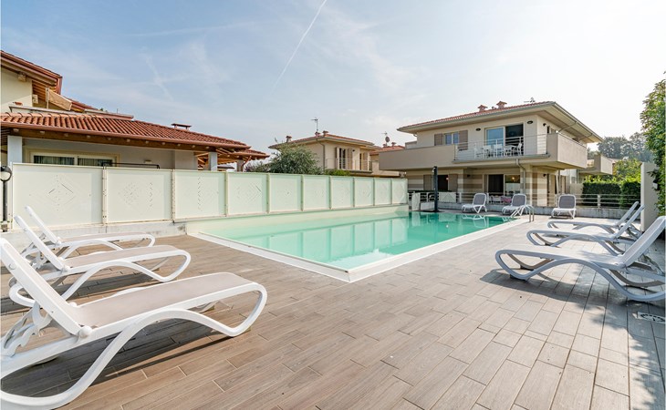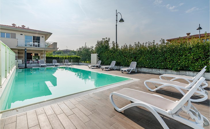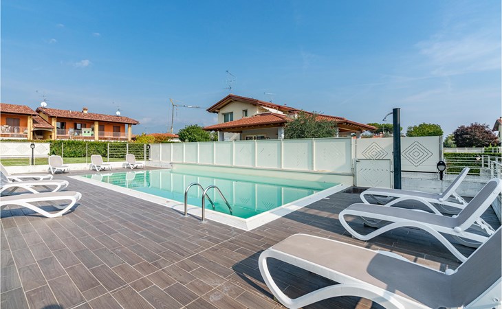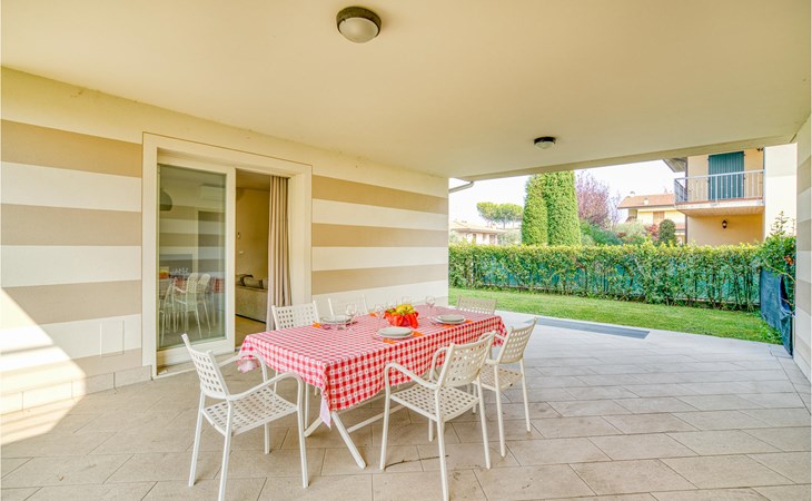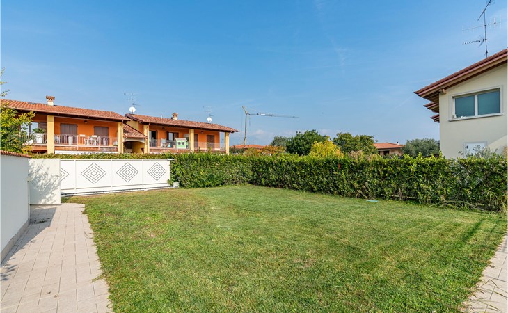Als u op zoek bent naar ontspanning en plezier in Noord-Italië, dan is deze vakantiewoning misschien iets voor u. Deze flat ligt niet ver van de zuidwestelijke oever van het Gardameer en biedt u een ideale plek voor een ontspannen en rustige tijd voor u en uw gezin. De ruime flat met twee verdiepingen is ingericht in lichte kleuren en een van de badkamers heeft een bad. Vanuit de woonkamer heeft u toegang tot het terras, waar u samen kunt ontbijten aan de eettafel op het kleine terras. Op de eerste verdieping heeft u ook toegang tot een balkon. Het huis heeft een omheinde tuin en een gedeeld buitenzwembad waar u in het water kunt springen of kunt ontspannen op de ligstoelen naast de deur.