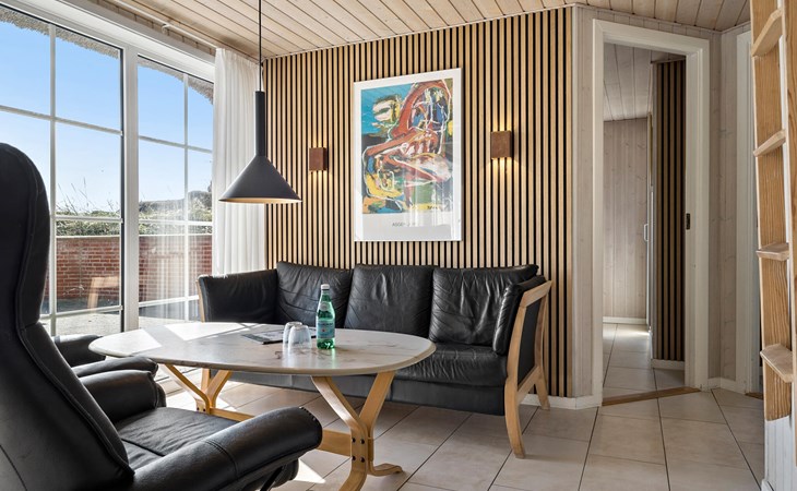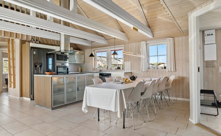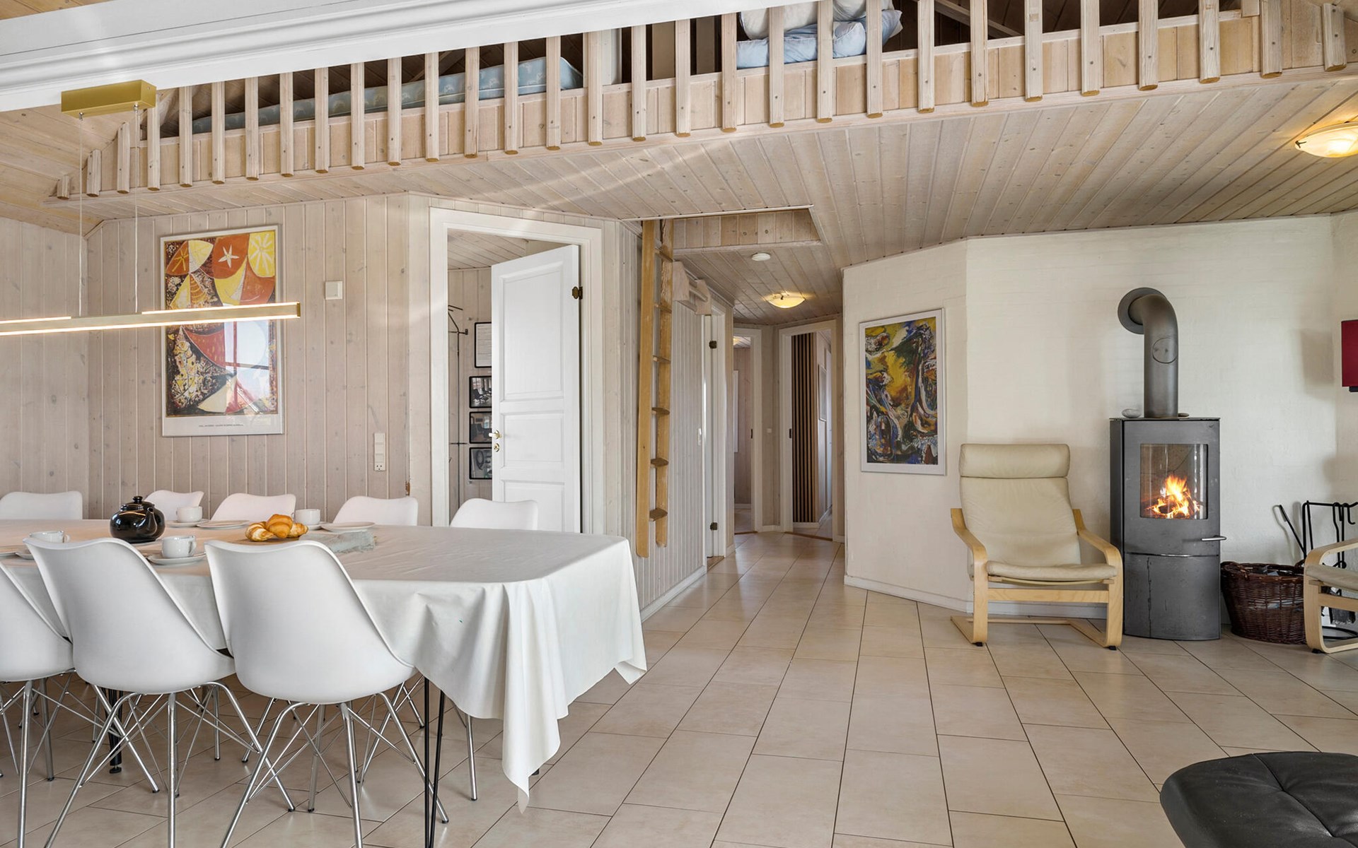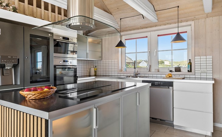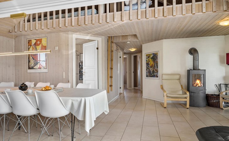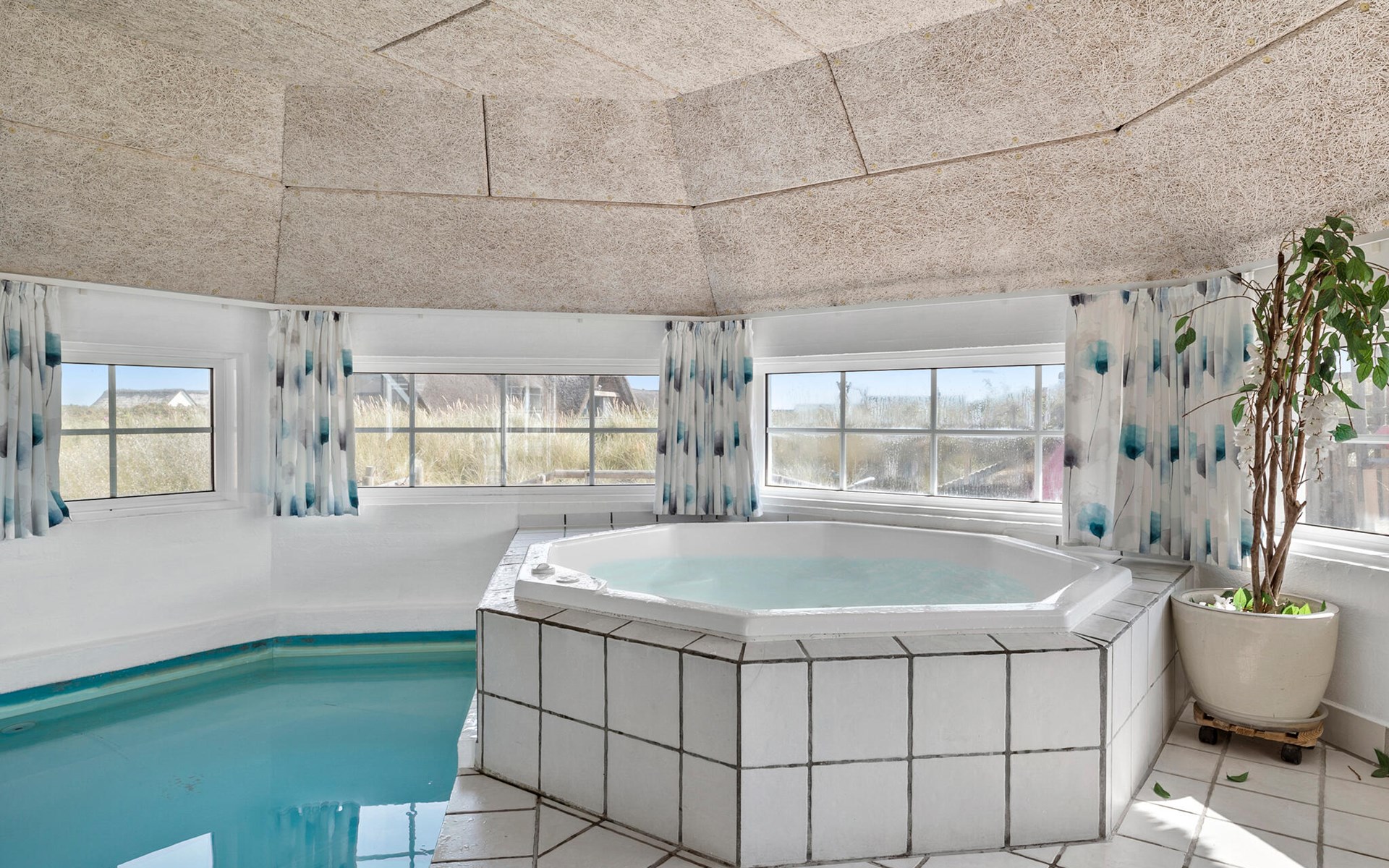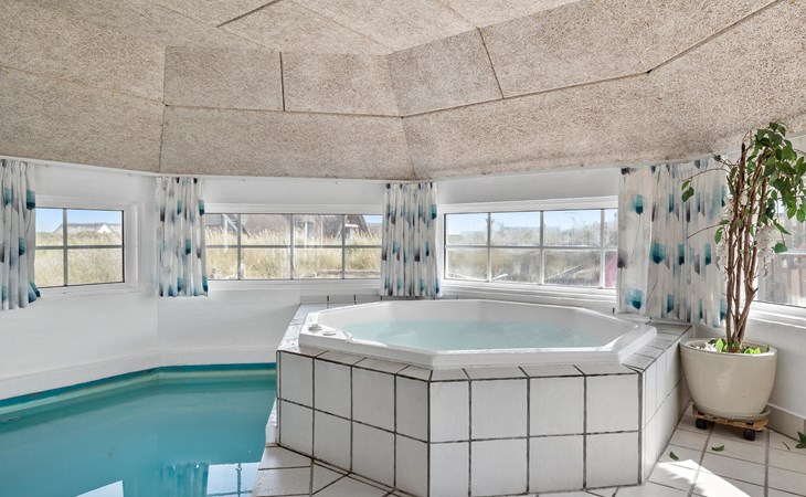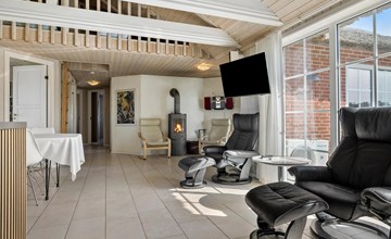 Holmsland Klit is een vakantieparadijs met volop mogelijkheden voor een actieve vakantie, het scheidt de bruisende Noordzee van het rustigere water van Ringkøbing Fjord. Bovendien is er een fijn zandstrand en duinen van de beste kwaliteit. Dit fantastische vakantiehuis met twee tussenverdiepingen biedt ook veel ruimte voor grote gezinnen. In de tuin is een prachtige speeltuin met een grote klimtoren, een schommel en een hindernisbaan. Het hele gezin zal zich vermaken in het zwembad. U kunt ook heerlijk ontspannen in de whirlpool voor vijf personen. Veel apparaten in het huis zijn elektriciteitsbesparend. In de gezellige woonkamer kunt u genieten van de aangename warmte van de houtkachel. Er is snel internet (100/100 MBit).
