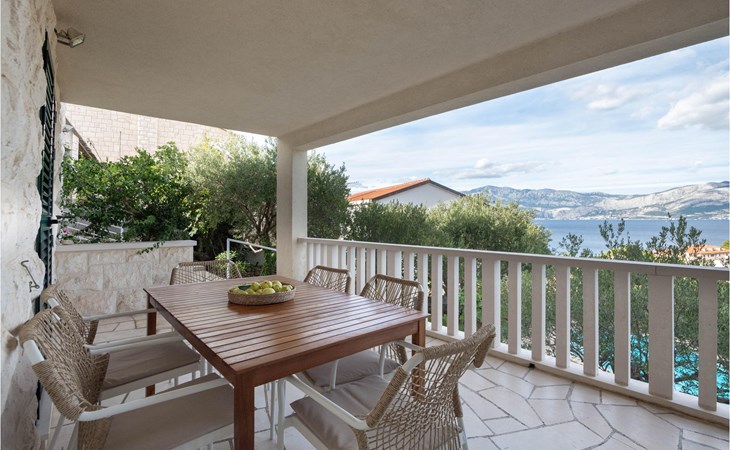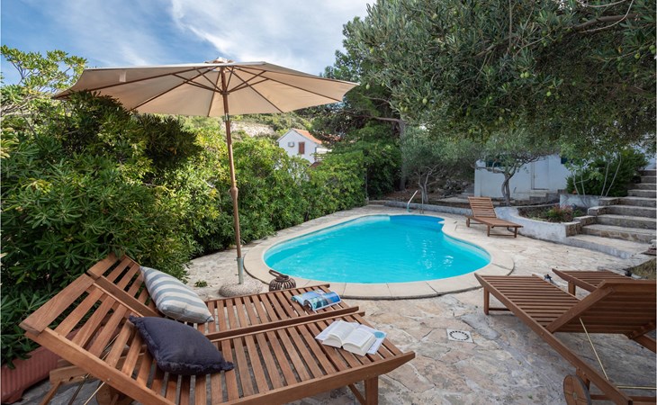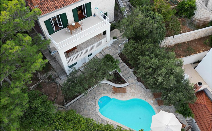 Dit smaakvol en modern ingerichte vakantiehuis ligt op het prachtige eiland Brac in centraal Dalmatië. Het is perfect voor een groter gezin of een kleinere groep. De laagste helling van het dak in een van de slaapkamers op de bovenverdieping is 50 cm. Het ruime terras bij het zwembad met comfortabele ligstoelen ademt vakantiesfeer en is een droom. Als u wilt sporten, zijn er tennisbanen bij het huis, en een mooi, kindvriendelijk kiezelstrand is gemakkelijk bereikbaar in een paar minuten met de auto. Hoewel het huis aan een weg ligt, zorgt de omheinde tuin ervoor dat uw kinderen hier zorgeloos kunnen spelen. Selca ligt in het rustige oostelijke deel van het eiland Brac en hier kunt u heerlijk zwemmen op de stranden van talloze baaien. Brac leeft voornamelijk van toerisme, visserij en landbouw met wijn- en olijfgaarden.