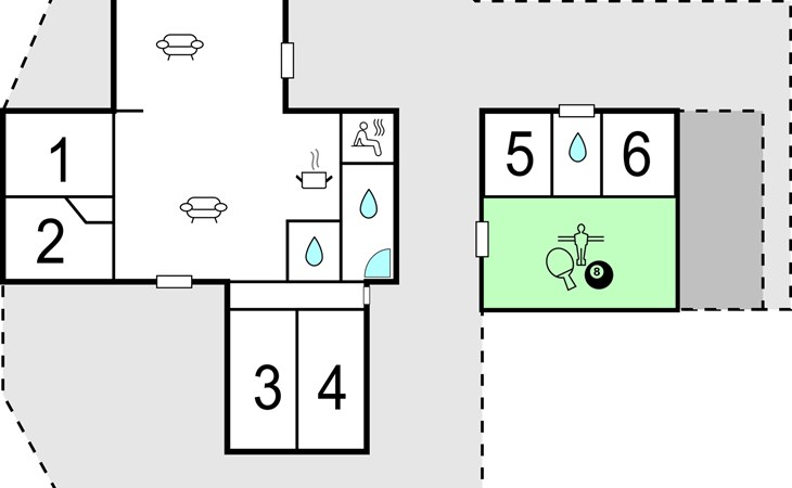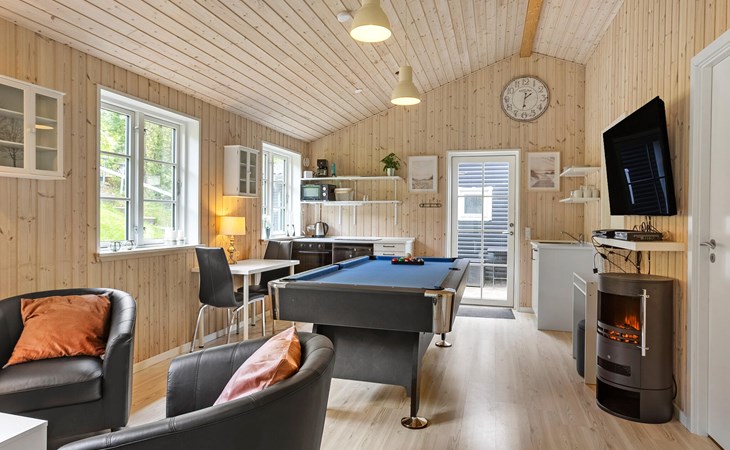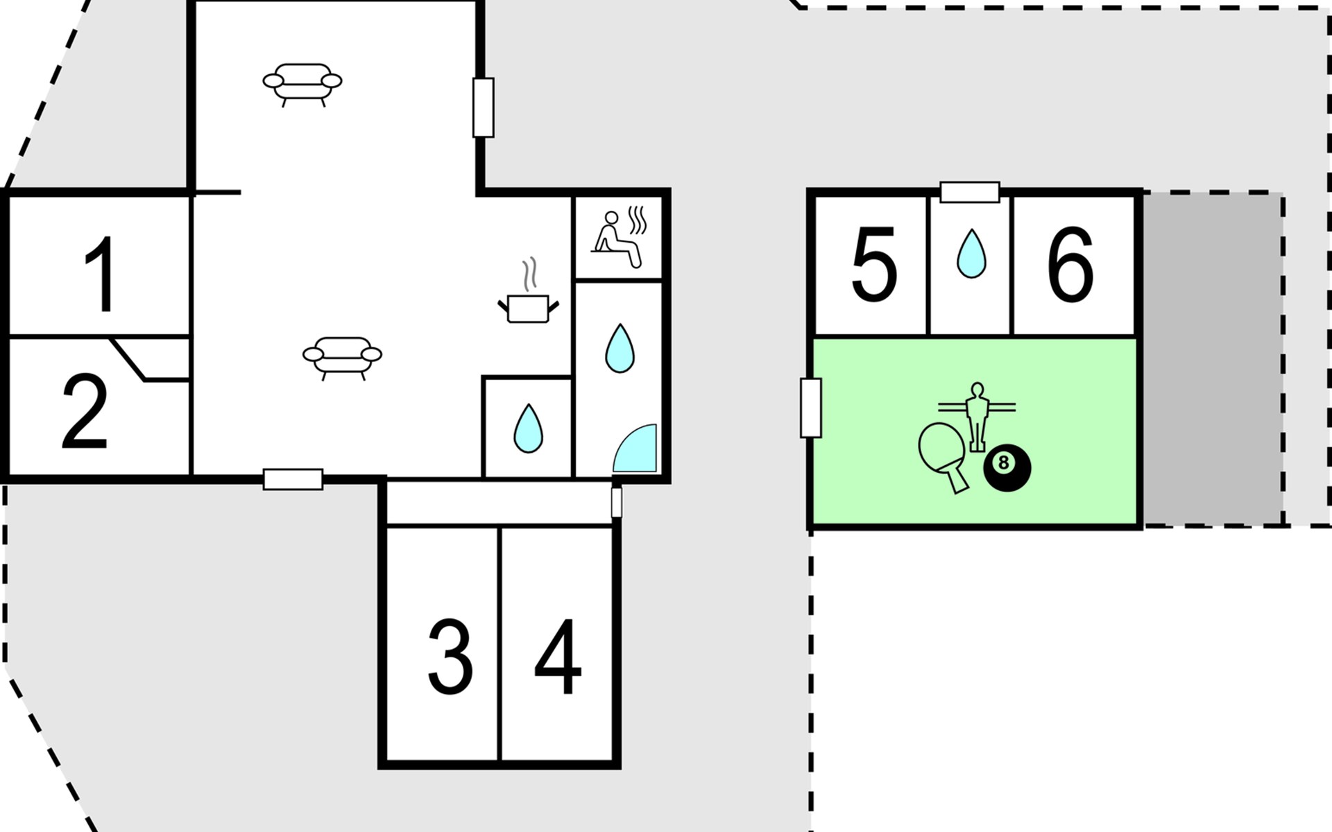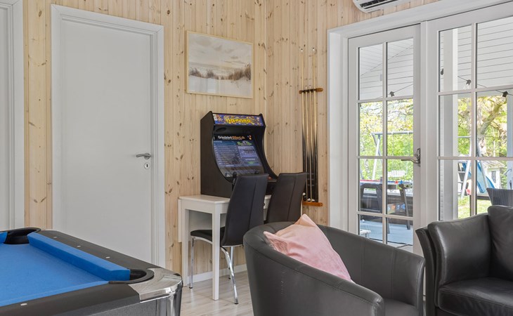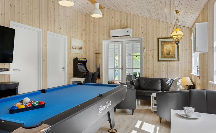 Bij slecht weer zal de hobbykamer zowel kinderen als volwassenen zeker aanspreken. Het is uitgerust met een pooltafel, tafelvoetbal, air hockey, PlayStation evenals barkrukken en tafels en een extra koelkast. Er is ook een 2-persoons spa, een sauna en 4 tv's in het huis.