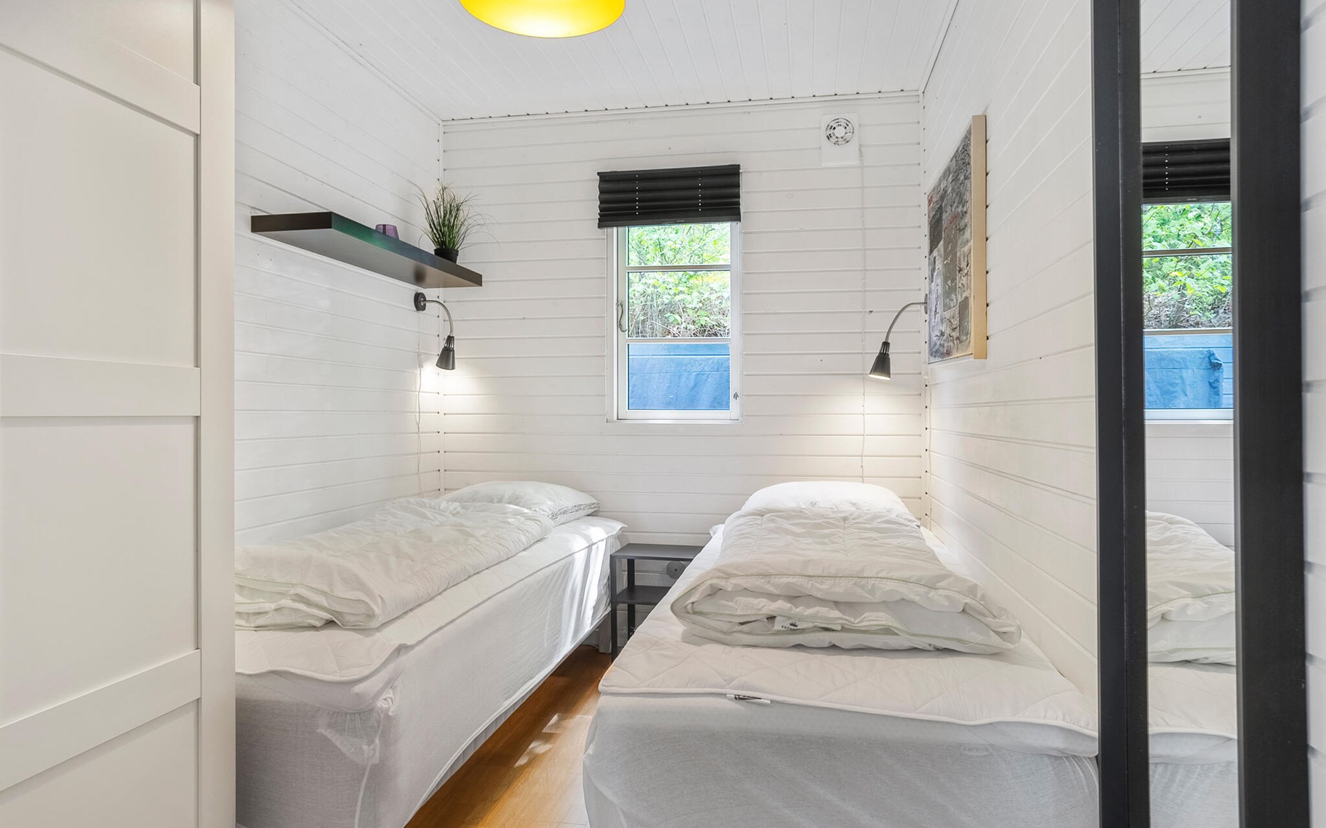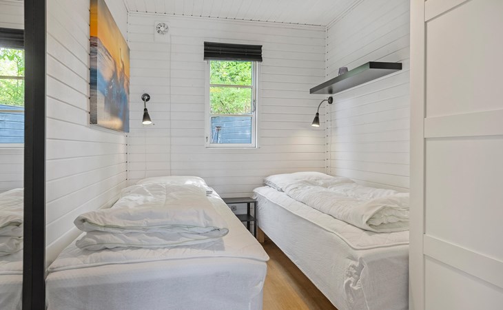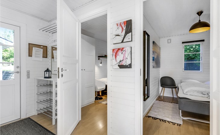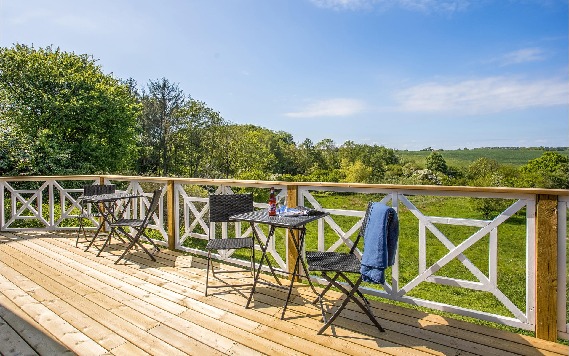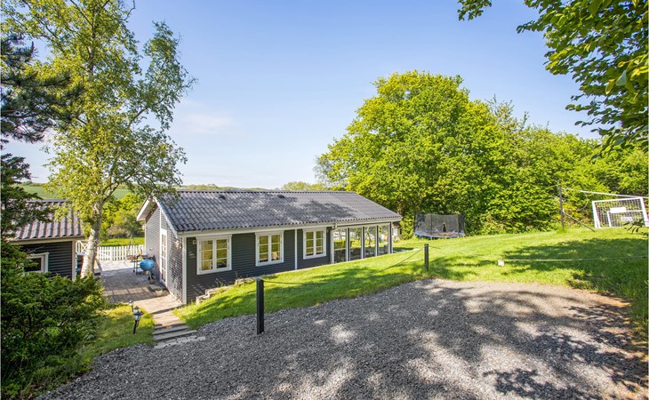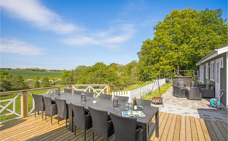 Dit gezellige houten vakantiehuis, gerenoveerd in 2021, ligt op een groot perceel hoog in de natuur. Vanuit het huis en het terras heeft u een prachtig en mooi uitzicht op de weide, het bos en de velden. Hier is het niet ongewoon om damherten rond het huis te zien sluipen. Het huis is rustig en ongestoord gelegen. In 2017 werd een aanbouw van 40 m² met een schuin plafond toegevoegd. Er zijn in totaal 6 kleinere slaapkamers. Ze hebben allemaal tweepersoonsbedden en kledingkasten, plus ze zijn verdeeld over 3 secties in het huis.