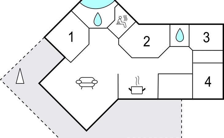 Spannend en anders ingericht vakantiehuis met veel schuine hoeken die men normaal niet in vakantiehuizen aantreft. De grote ramen maken de woonkamer bijzonder licht. Het huis heeft houten en klinkervloeren. Voor kinderen is er een kleine open verdieping die zowel als slaapruimte of als speelplek gebruikt kan worden. De grote terrassen zijn een heerlijke plek als de zon schijnt. Dicht bij het huis vindt u zowel de zee en de fjord als kale duinlandschappen. Het is niet ver van een manege.