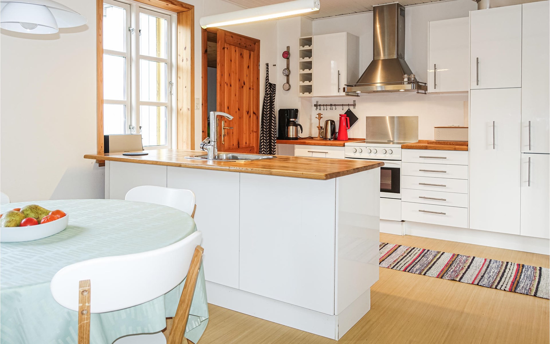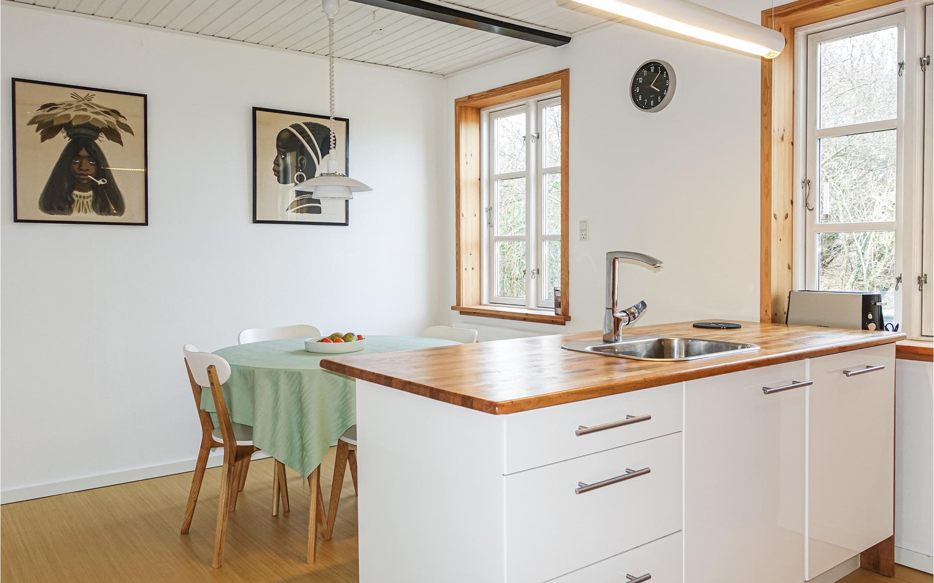 Een korte wandeling brengt u naar het strand, waardoor dit huis een geweldige uitvalsbasis is voor vele zwemtochten. Het charmante Snogebæk biedt goede restaurants, winkels, enz. Het is onder andere een aanrader om de attractie Rokkestenen te beleven en Dueodde met zijn vuurtoren en populaire badstrand te bezoeken.
