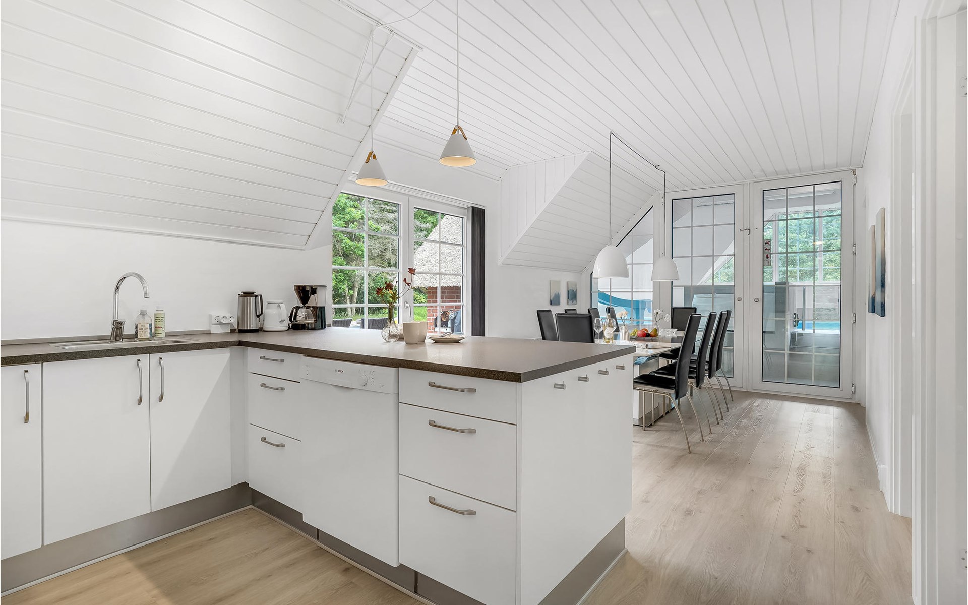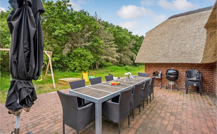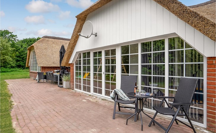 Het grote vakantiehuis ligt in een aantrekkelijk vakantiehuizengebied in Vester Husby en heeft een rieten dak dat kenmerkend is voor de regio. Er is een grote wellnessruimte uitgerust met een zwembad van 27 m², een whirlpool voor drie personen en een sauna.