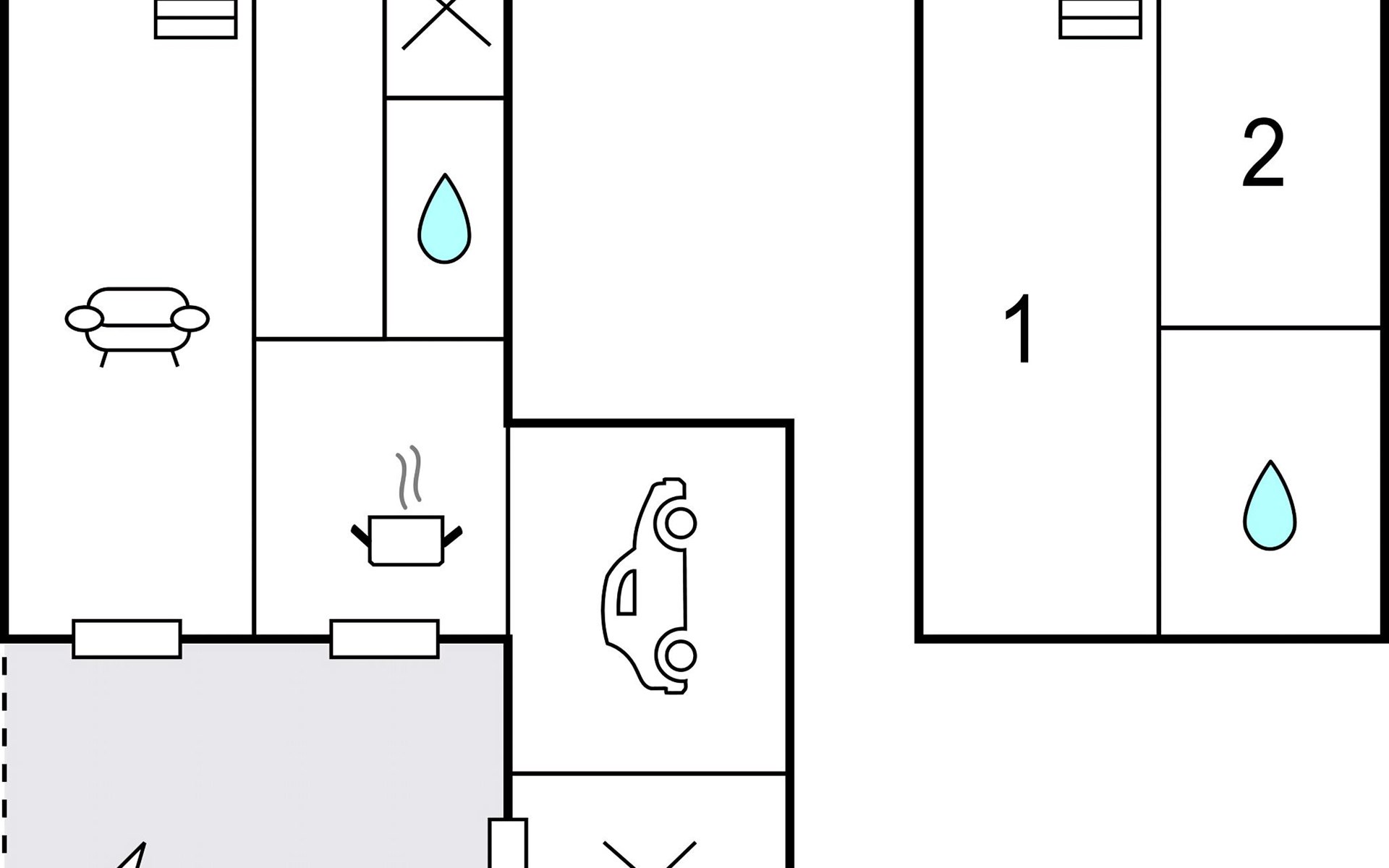 - Slaapk. tevens doorgang:
